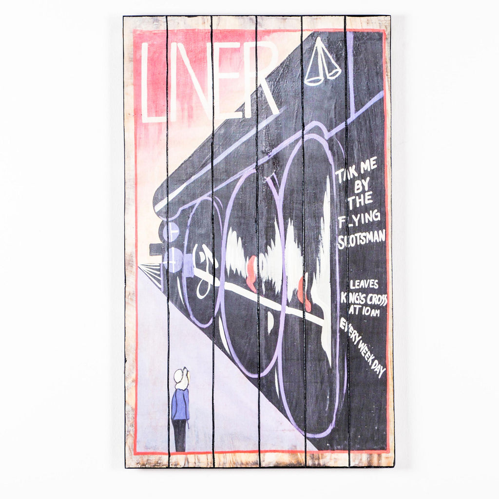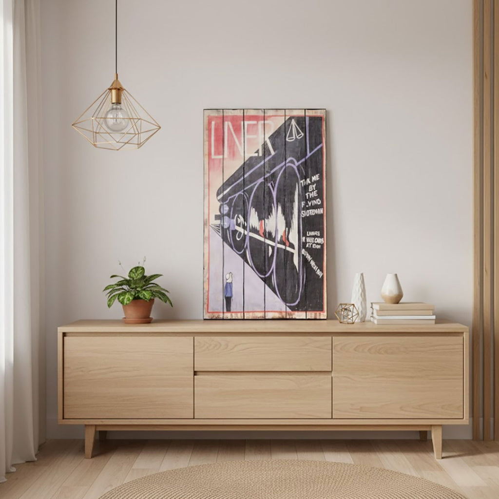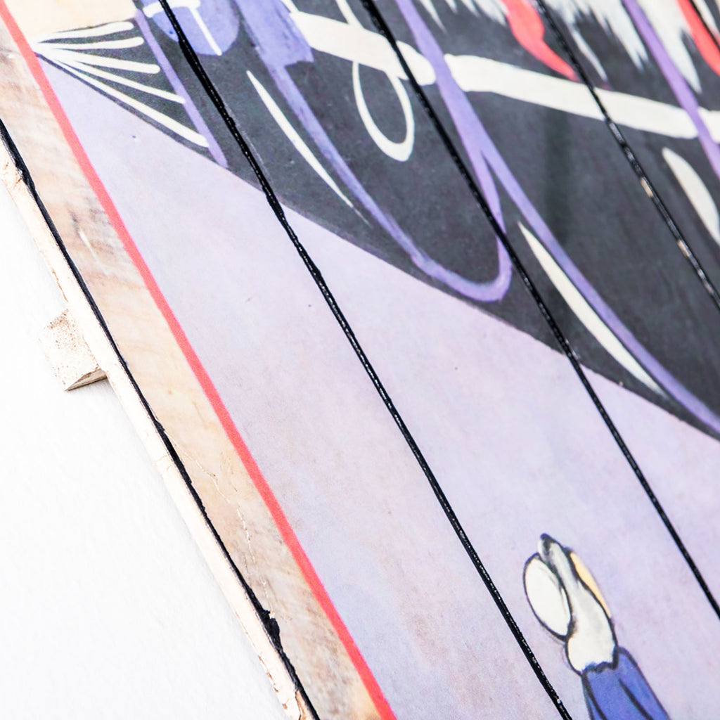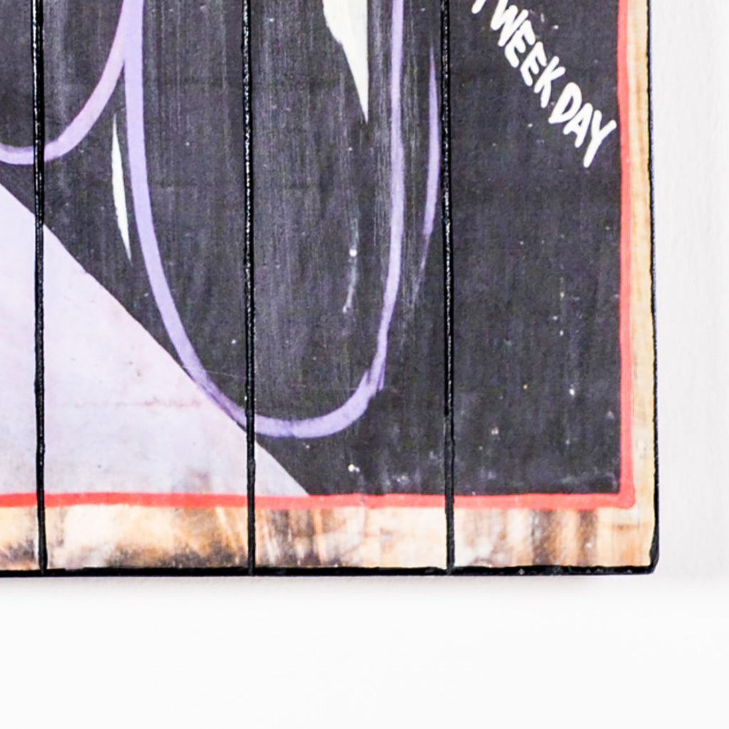 Holzplatte mit Drucken. 3 X 60 H. 100