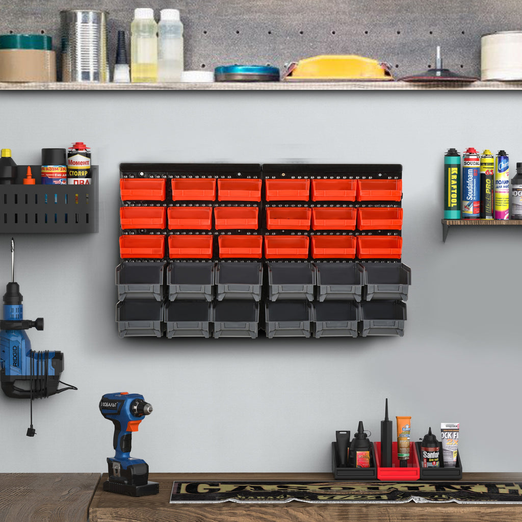 Diese Utensilienbox hilft Ihnen, kleine Werkzeuge gut organisiert und leicht zugänglich aufzubewahren. Es besteht aus strapazierfähigem PP und hat eine beeindruckende Tragfähigkeit. Boxen in verschiedenen Größen können herausgenommen und nach Belieben angeordnet werden. 2 Steckplatten können zusammen oder separat an der Wand montiert werden, ideal für kleine Wandflächen. Eine gute Wahl für Ihre Werkstätten, Garagen und Schuppen.