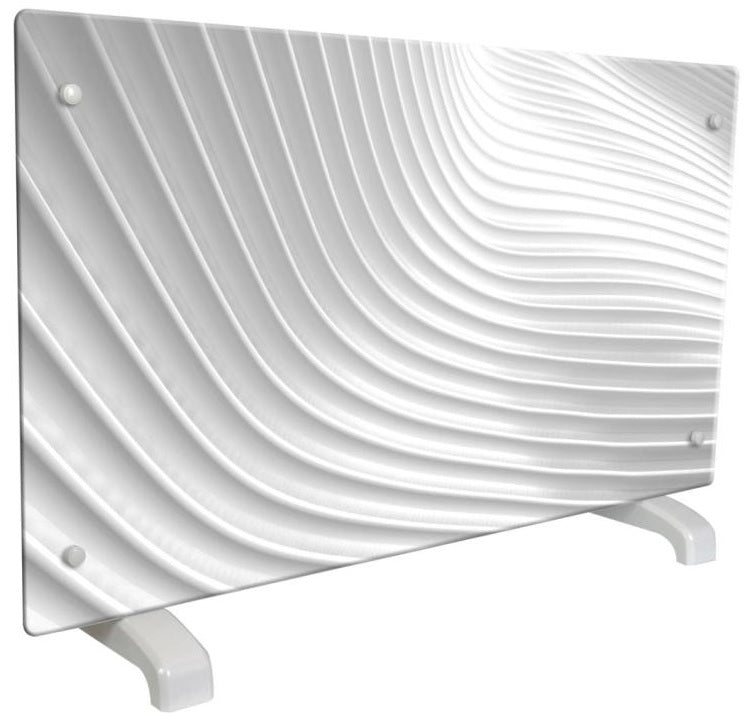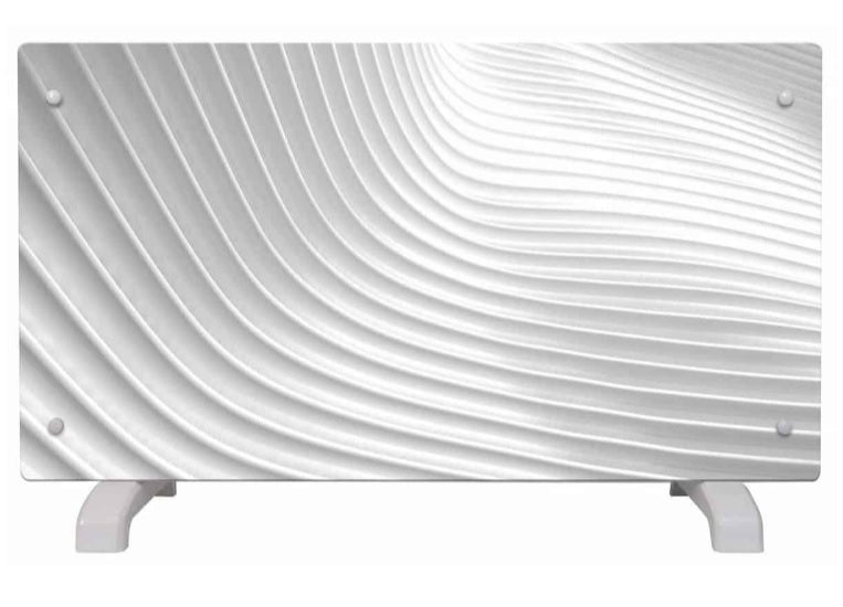 Elektrisches Heizpaneel mit Wellendekor. Aus Stahl mit gehärteter Glasfront, mit 2000 W Leistung, Überhitzungsschutz, 2 Leistungsstufen 1000 und 2000 W zum Beheizen von Räumen von ca. 30 m2.
