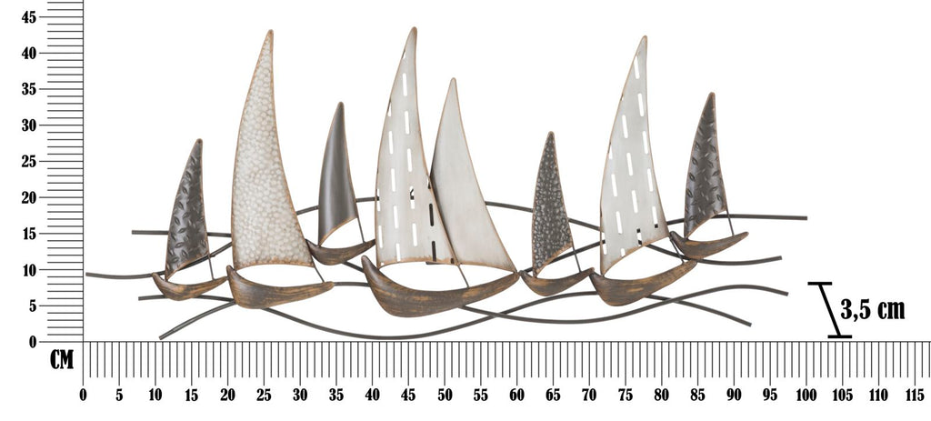 3D-Metalldekorplatte mit Segelbooten, die auf dem Meer segeln. Ein Hauch von Freiheit für jede Umgebung.