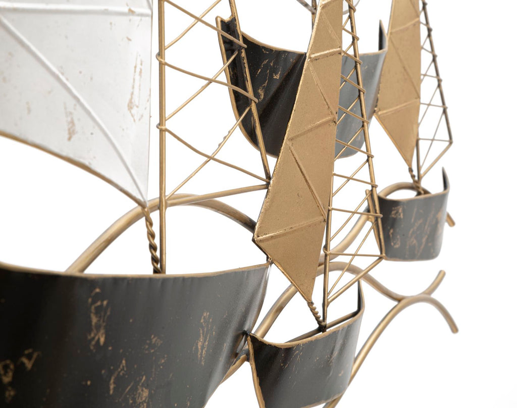 3D-Dekorplatte aus Metall, die eine Gruppe von Segelbooten darstellt. Das Design erinnert an Freiheit und die Meeresbrise.