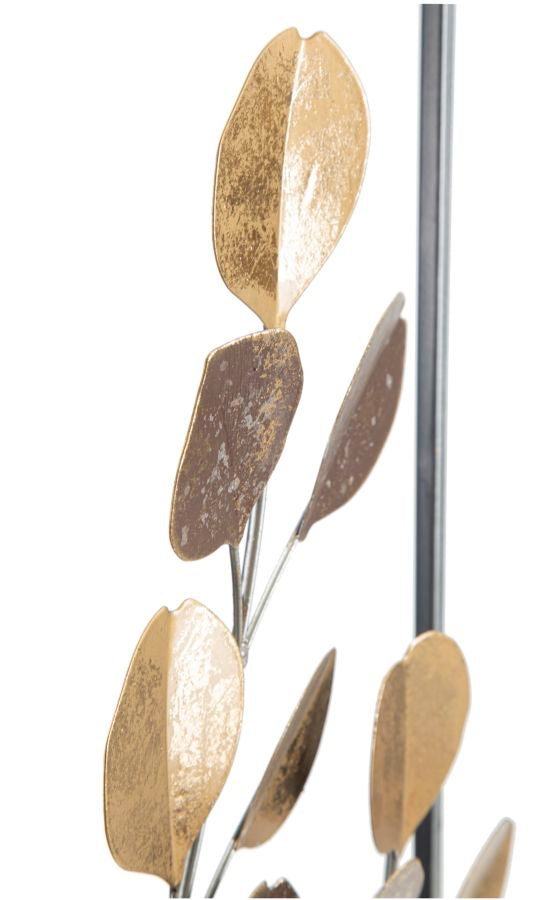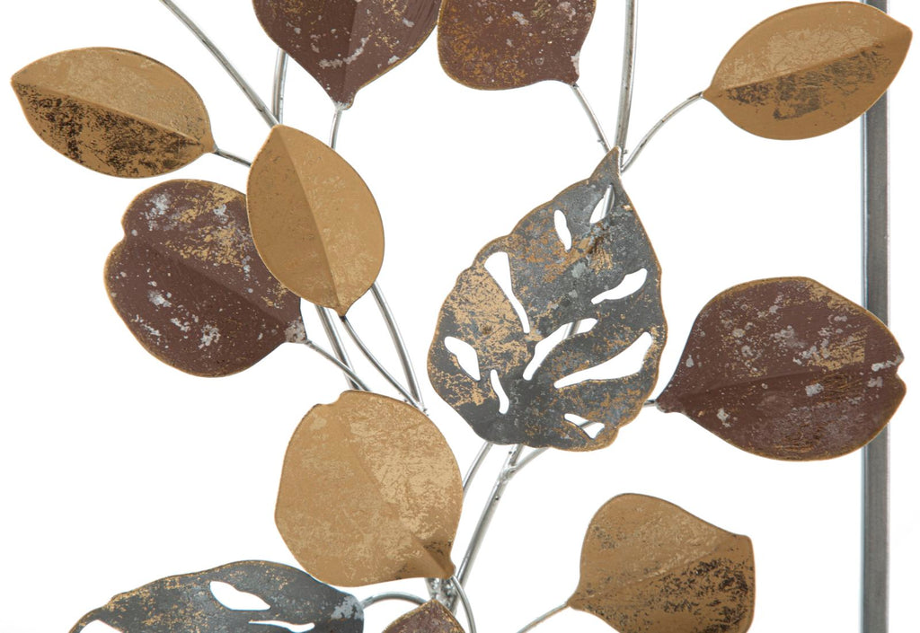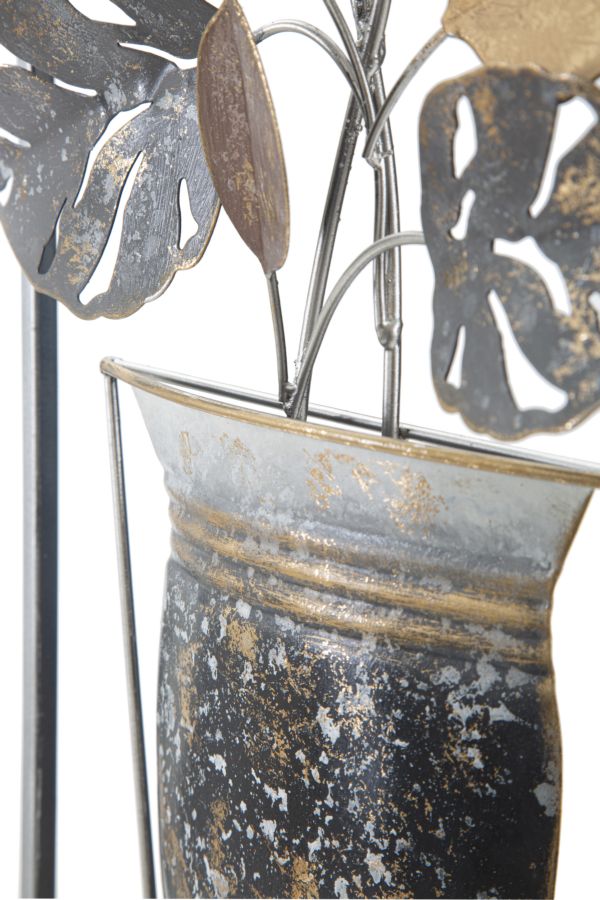 Metallplatte, die eine Blumenvase darstellt. 3D-Paneele sind der neue Trend für die Dekoration von Wänden. Lackiertes Metall ist in geometrischen, pflanzlichen oder tierischen Formen erhältlich, die jeder Umgebung einen glamourösen und überraschenden Reiz verleihen.