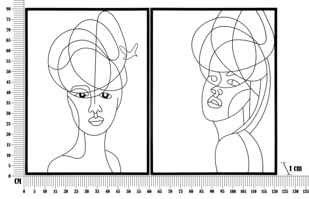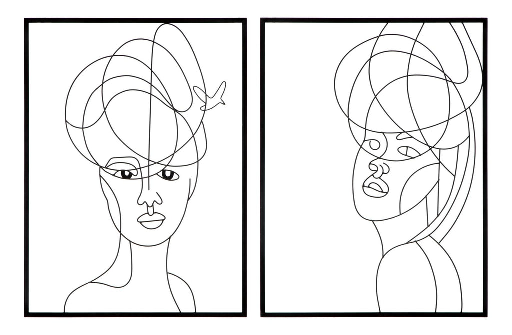 Paar dekorative 3D-Metallplatten, die Frauengesichter mit essentiellen und stilisierten Linien darstellen. Ein Hauch von Klasse und Raffinesse für jede Umgebung.
