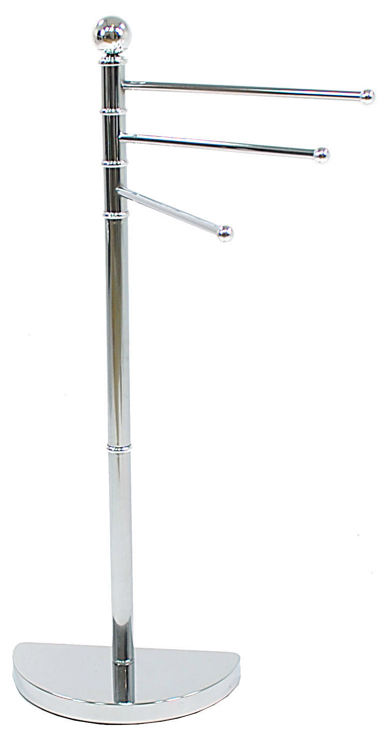 Handtuchhalter aus verchromtem Metall mit Halbmondsockel und 3 Ablagen.