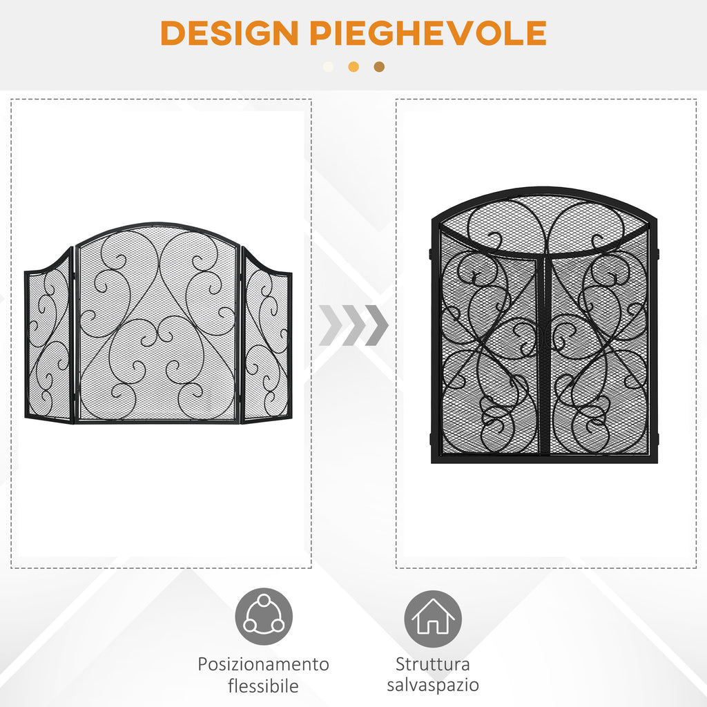 Parascintille con Antine 66x31x81 cm in Metallo Nero