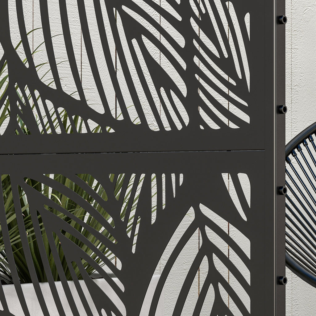 Paravento da Esterno Decorativo con Design a Foglie 122x198 cm in Acciaio Traforato Nero