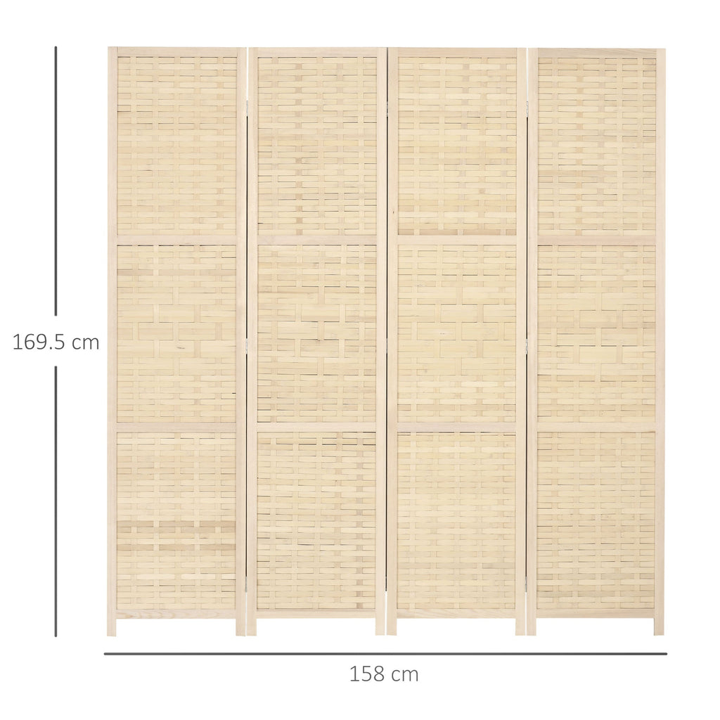 Brauchen Sie Privatsphäre? Der 4-türige Paravent von ist die perfekte Lösung für Ihre Bedürfnisse. Die Holzstruktur ist solide und hat eine elegante Verkleidung mit gewebtem Bambus in natürlichen Farbtönen und das faltbare Design ermöglicht es Ihnen, es auf kleinem Raum zu verstauen, wenn Sie es nicht brauchen. Teilen Sie Ihre Räume und schaffen Sie mit unserem Paravent eine private Ecke, wann immer Sie wollen!