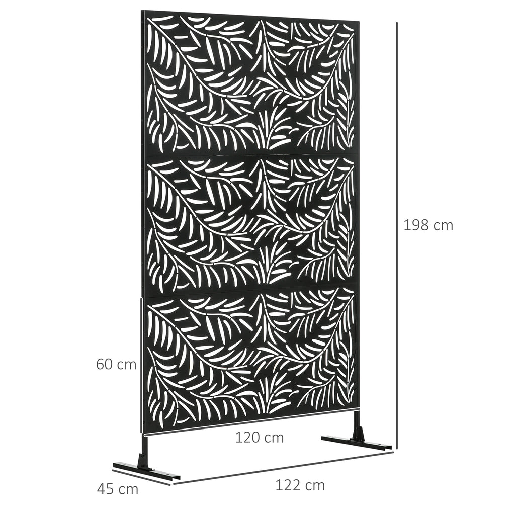 Paravento Separè da Esterno 122x45x198 cm con Motivi a Salice e 2 Piedini in Acciaio Nero