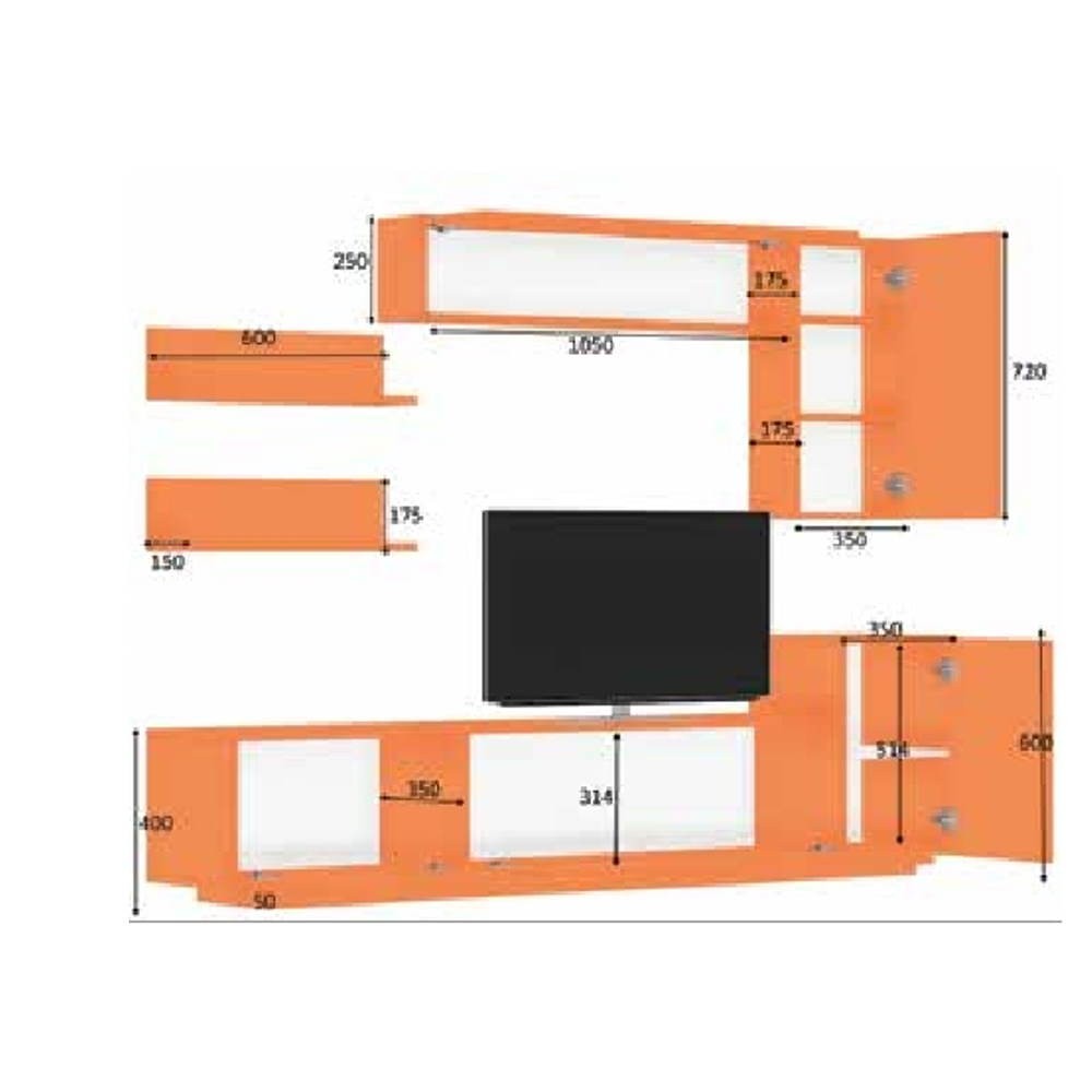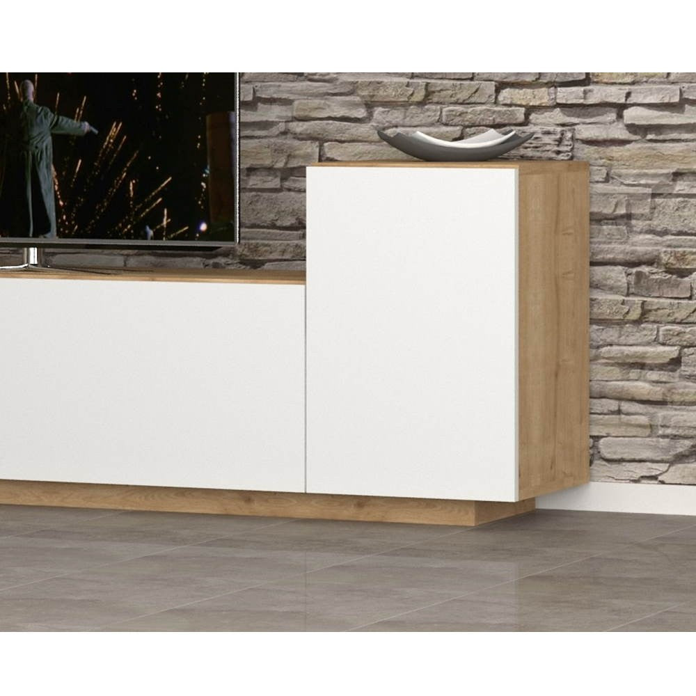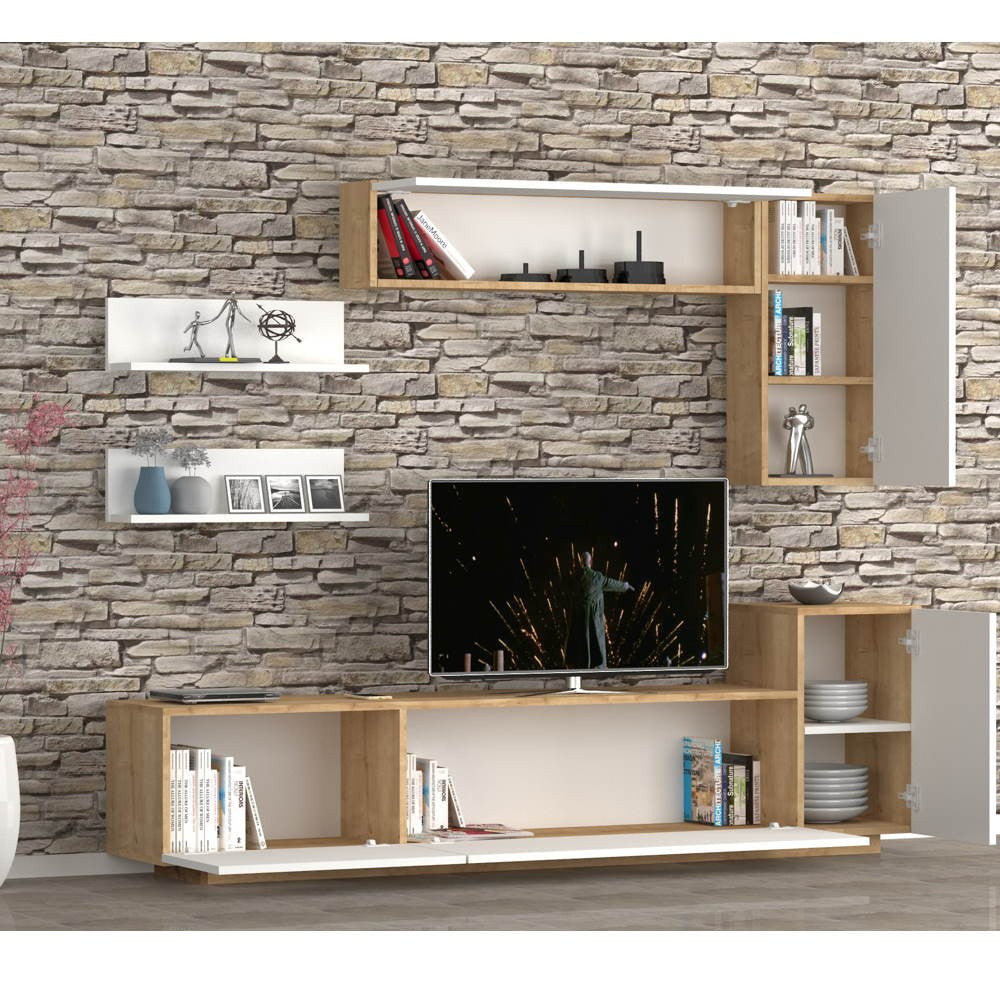 Parete attrezzata rovere e bianco da 200 cm Kale. Sobria, elegante e capiente parete attrezzata per arredare in modo funzionale il tuo soggiorno o salotto.