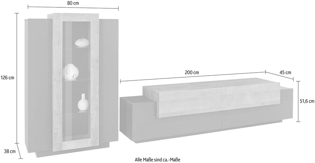 Parete Attrezzata Mobile TV e Vetrina 200x85x120,5 cm Coro Grigio Antracite Opaco/Rovere Wotan