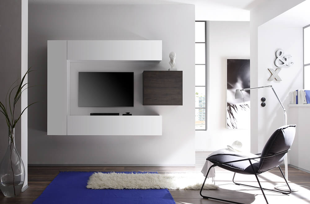 Ausgestattetes Wand-Wohnzimmermöbel mit 3 Hängemöbeln Die einzelnen Elemente können je nach Geschmack in einer anderen Position als im Bild positioniert werden TFT Cube SerieMerkmale: