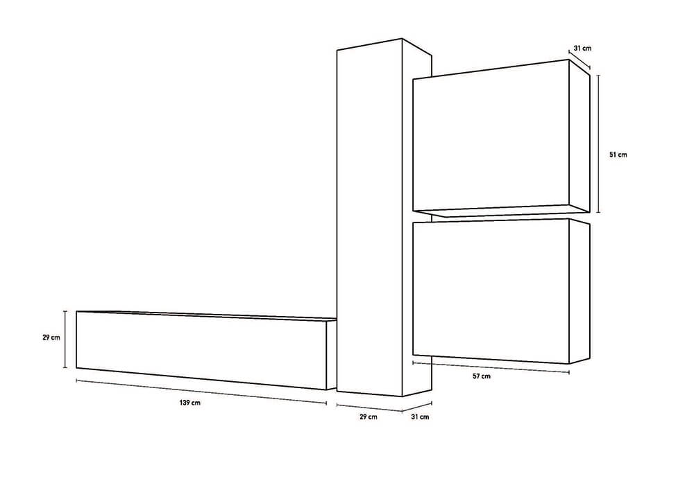 Ausgestattetes Wand-Wohnzimmermöbel mit 4 Hängemöbeln Die einzelnen Elemente können je nach Geschmack in einer anderen Position als im Bild positioniert werden TFT Cube SerieMerkmale:
