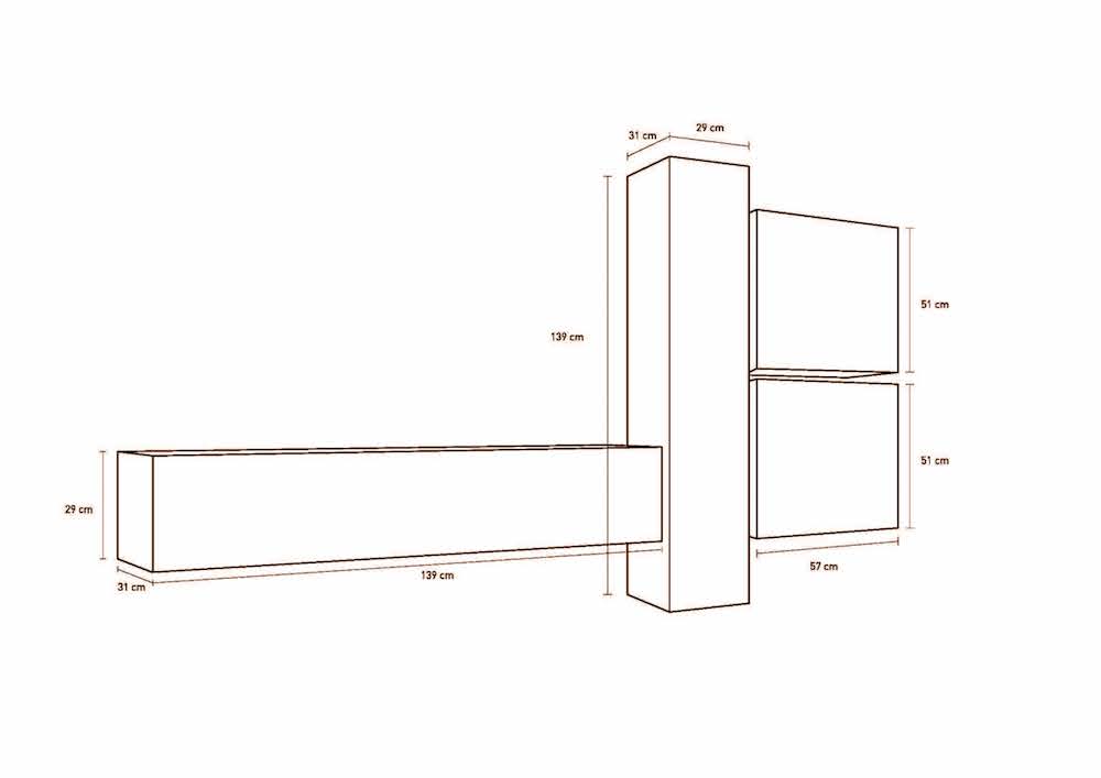Möbelset für das Wohnzimmer mit 4 Hängemöbeln Die einzelnen Elemente können je nach Geschmack in einer anderen Position als im Bild platziert werden Boost Serie TFTMerkmale: