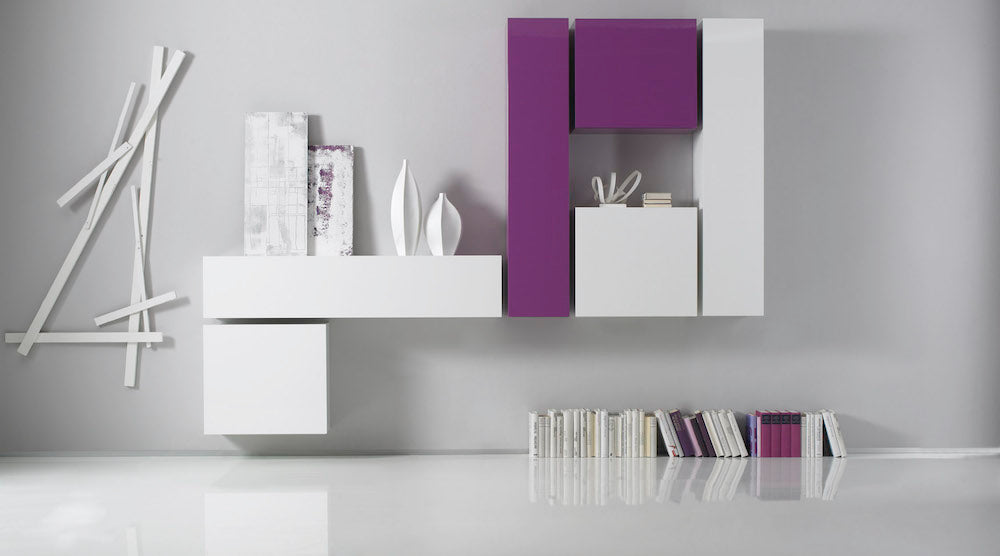 Ausgestattete Wand Wohnzimmermöbel 6 Hängemöbel 255x31x190cm TFT Boost Weiß und Lila
