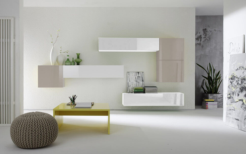 Ausgestattetes Wand-Wohnzimmermöbel mit 6 Hängemöbeln Die einzelnen Elemente können je nach Geschmack in einer anderen Position als im Bild positioniert werden Boost Serie TFTMerkmale: