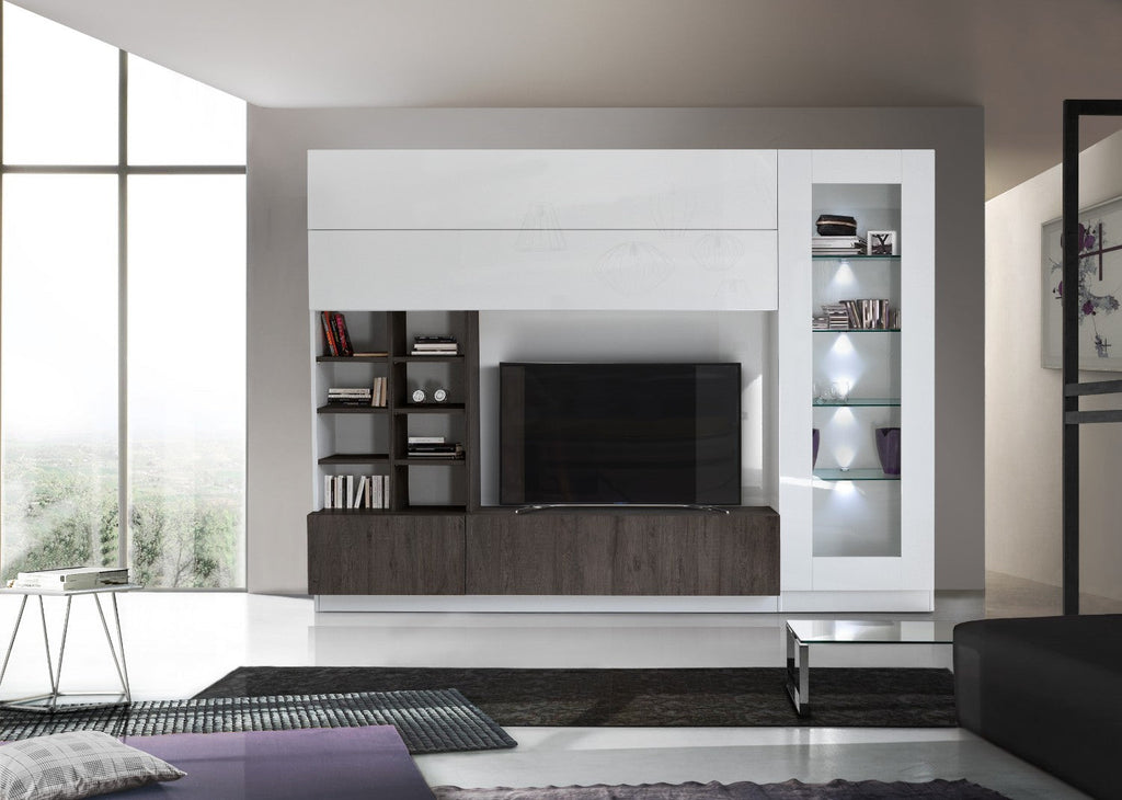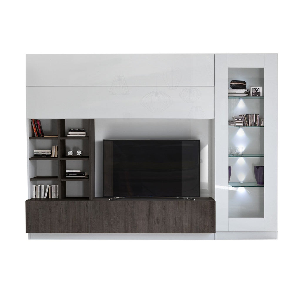 Wohnwand Wohnzimmermöbel Fernsehschrank 2 Hängeschränke Bücherregal und Säulenschrank 280x43x207 cm in Holz TFT Line Eiche Wenge