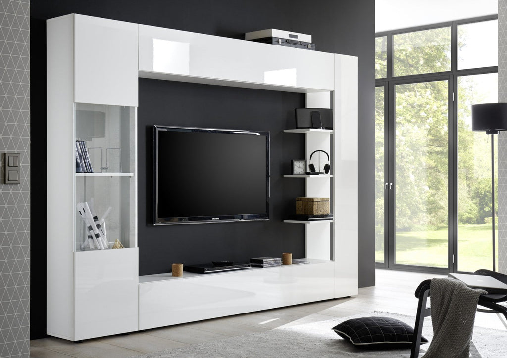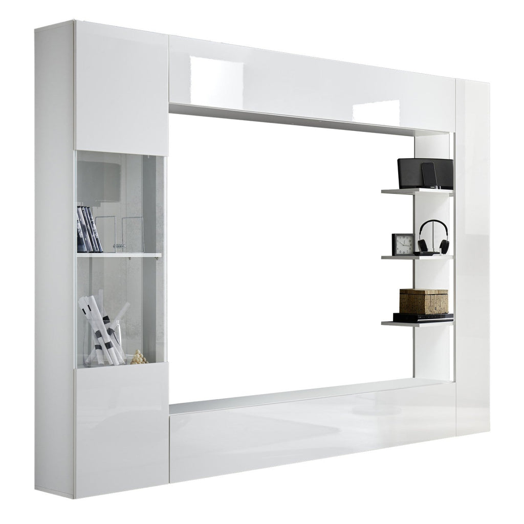 Aufbewahrungswand Wohnzimmermöbel Fernsehschrank Wand Bücherregal und Säulenschrank TFT Akira 2 Glossy White