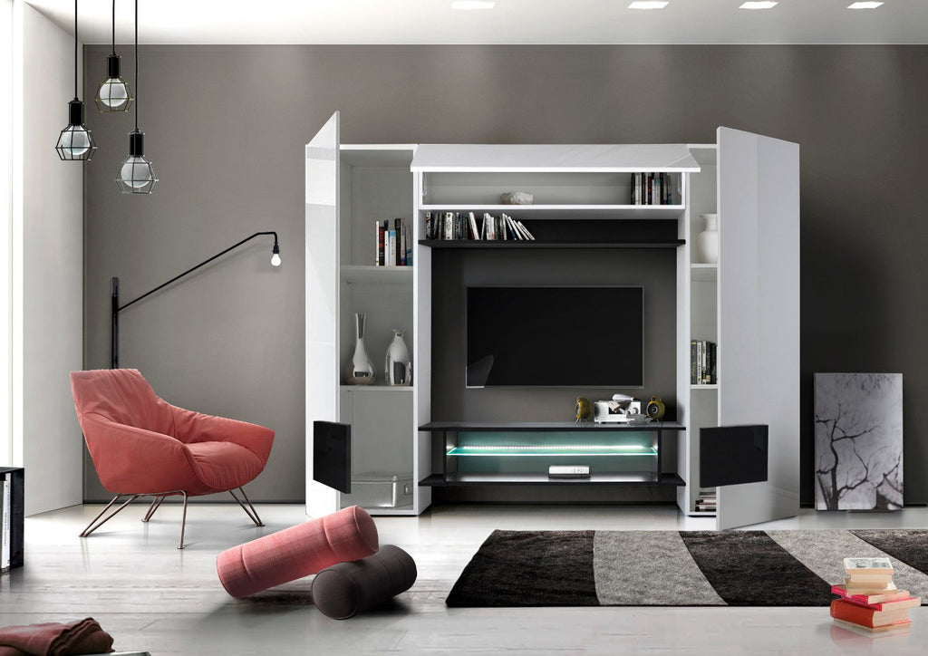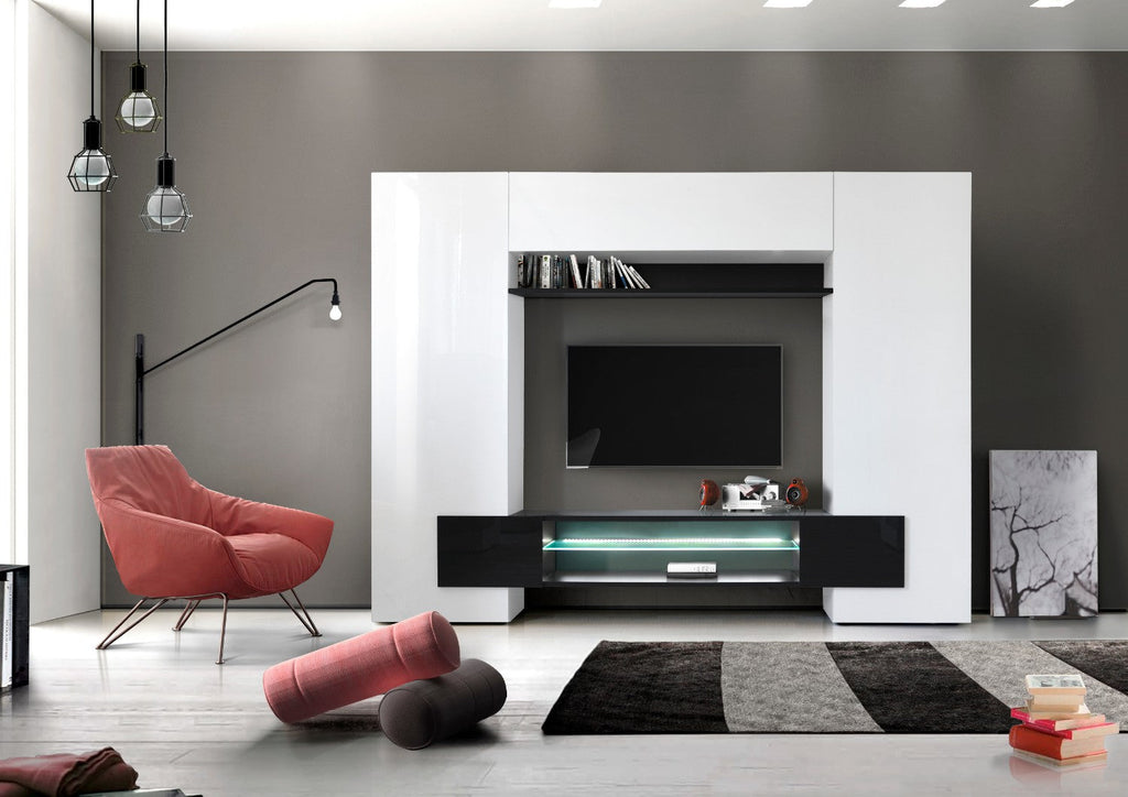 Schrankwand Wohnzimmermöbel TV-Schrank Wohnwand 2 Säulenschränke TFT-Bauweise Schwarz und Weiß