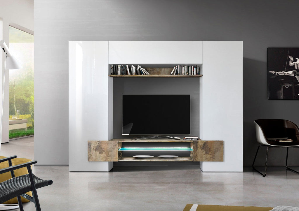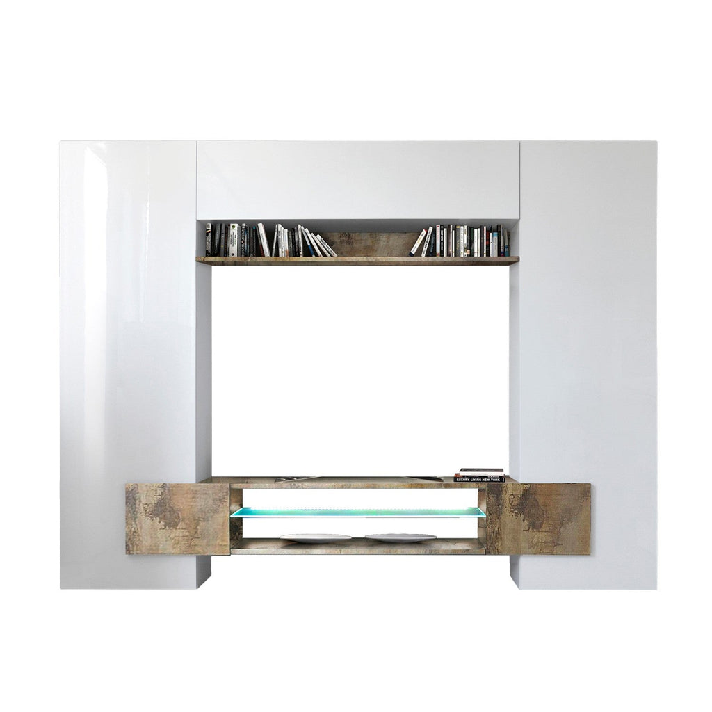 Ausgestattete Wand Wohnzimmermöbel TV-Einheit Wandeinheit 2 Säuleneinheiten 258 x 37 x 191 cm in TFT-Bauholz in Weiß und Birne