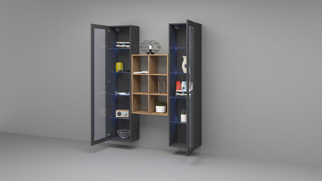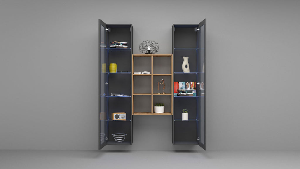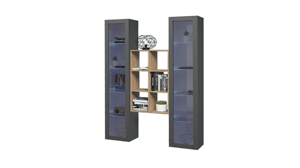 Parete Attrezzata Soggiorno 140x30x180 cm Maruska n°19 Grigio Antracite Opaco/Rovere Wotan