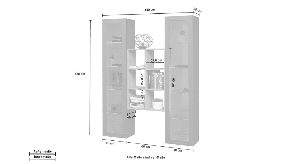 Home Bestseller Wohnzimmermöbel Parete Attrezzata Soggiorno 140x30x18...