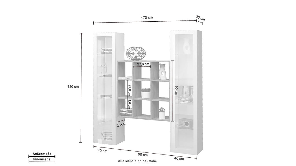Home Bestseller Wohnzimmermöbel Parete Attrezzata Soggiorno 170x30x18...