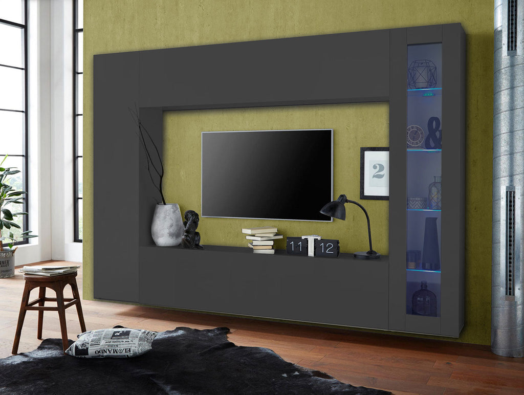 Parete Attrezzata Soggiorno 260x30x180 cm Maruska n°3 Grigio Antracite Opaco