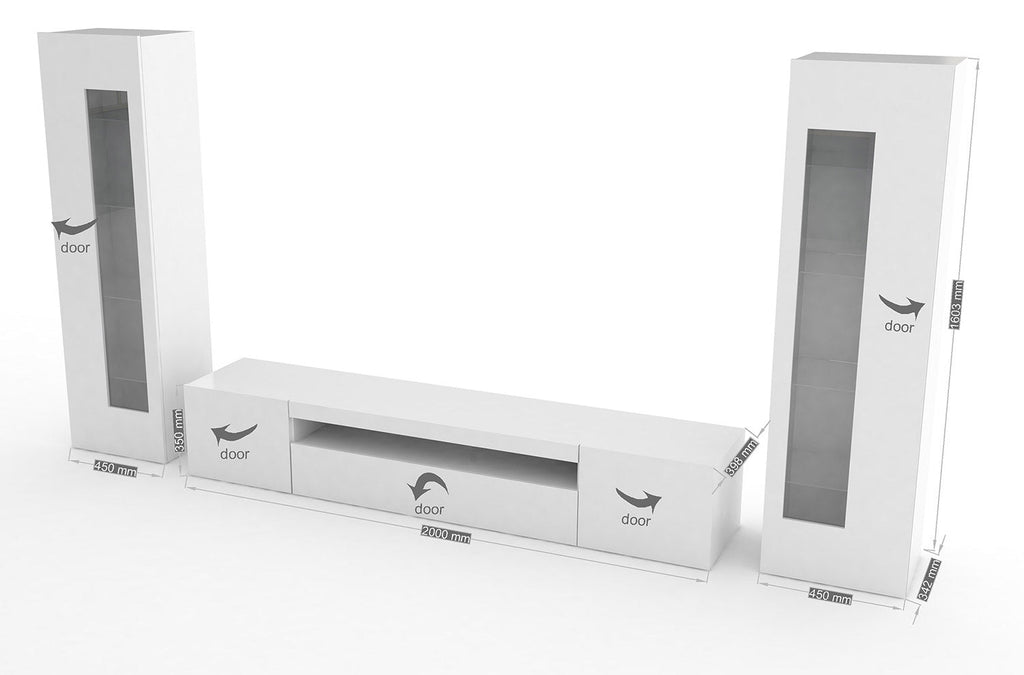 - Composto da 3 unità – Due Colonne con Vetrine e un Mobile Porta TV