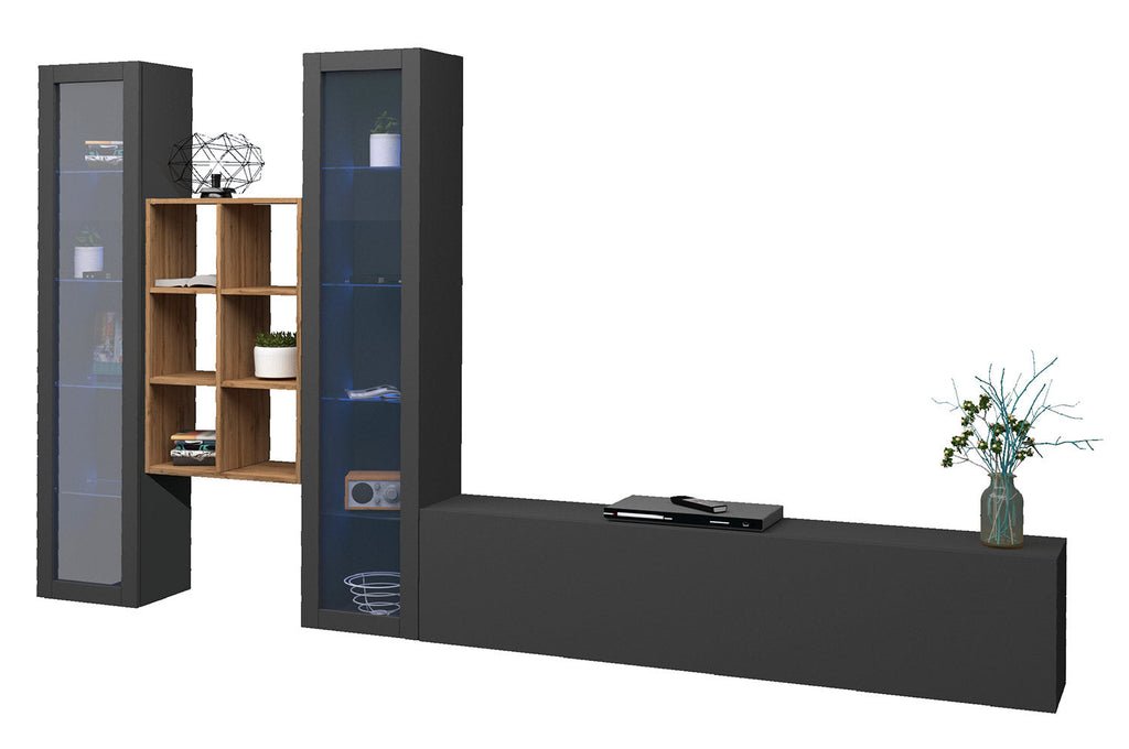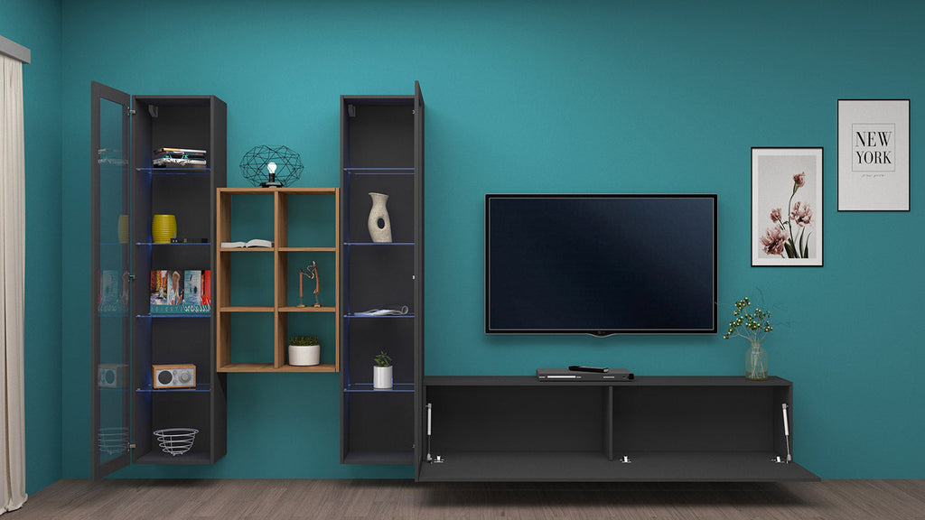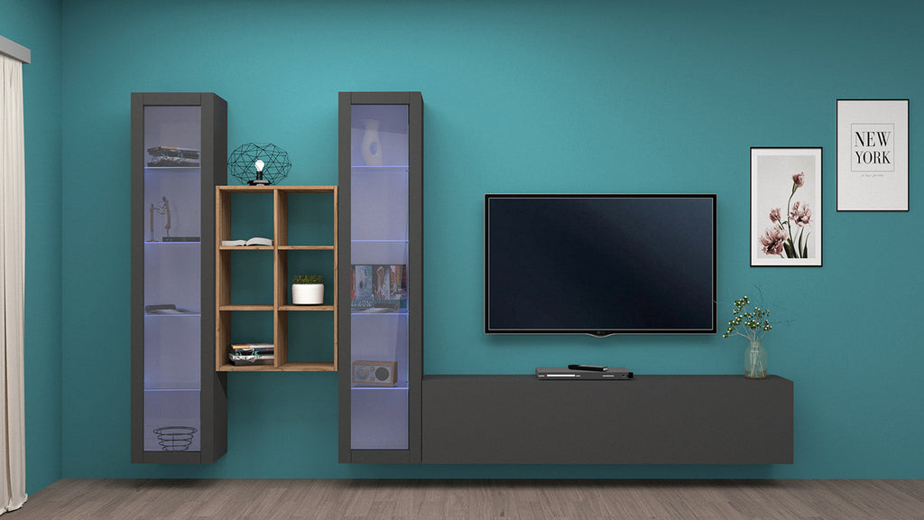 Parete Attrezzata Soggiorno 320x30x180 cm Maruska n°18 Grigio Antracite Opaco