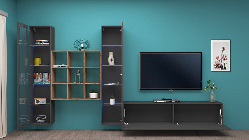 Parete Attrezzata Soggiorno 350x30x180 cm Maruska n°27 Grigio Antracite Opaco