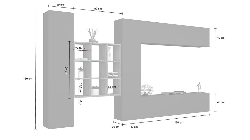 Il soggiorno MARUSKA n°29 da 350 cm è caratterizzato da una parete con 2 colonne armadio, 1 mobile porta tv, 1 vasistas e una libreria 9 vani. Le colonne armadio hanno 1 anta battente e all'interno sono composte da 4 ripiani in legno. La parete del soggiorno può essere montata sia a terra che appesa. Il mobile porta tv è dotato di 1 anta ribalta, mentre la vasistas ha 1 anta vasistas, regolati entrambi da braccetti a gas. Possono essere montati a destra o a sinistra. La struttura e i pezzi frontali del soggiorno sono interamente in melaminico bianco laccato lucido o antracite opaco, mentre la libreria è il legno rovere wotan. Il soggiorno MARUSKA n° 29, è adattabile a qual sia si tipologia di arredamento, grazie al suo design innovativo. Nella confezione ci sono anche un kit di montaggio e delle istruzioni semplici e dettagliate.