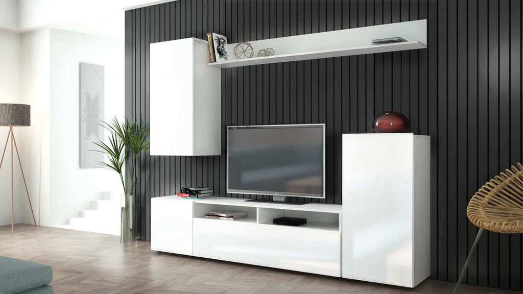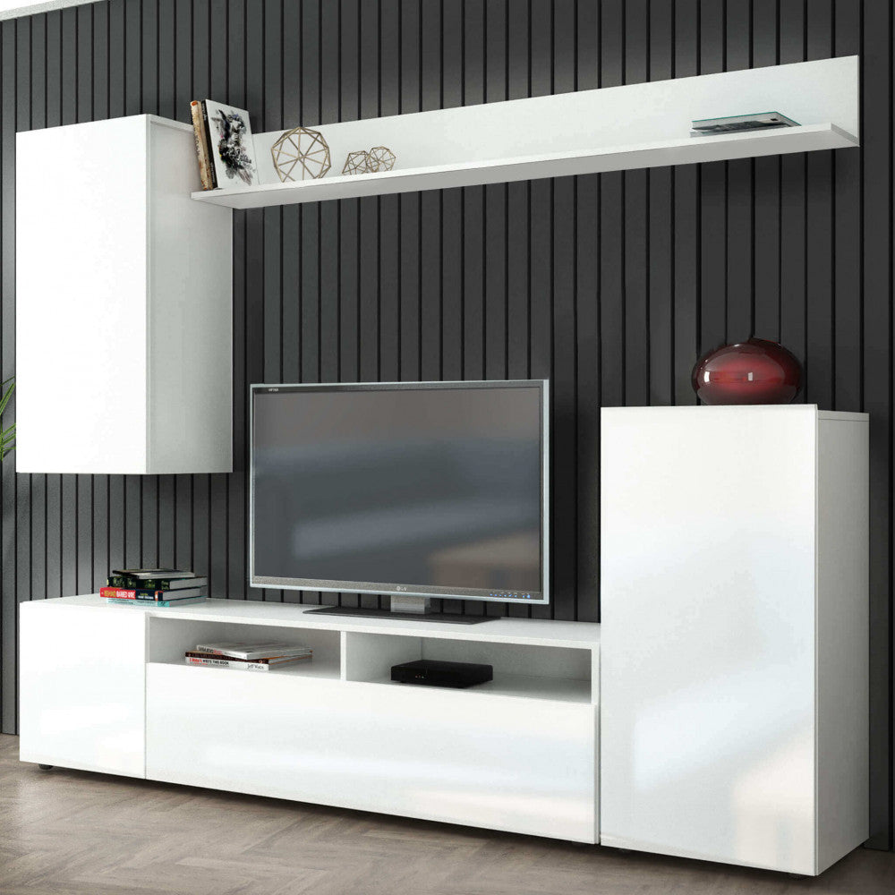 Wohnwand Bridge 207 x 34 x 170 h cm aus zweischichtiger weißer Spanplatte