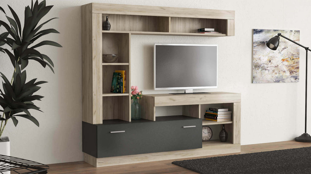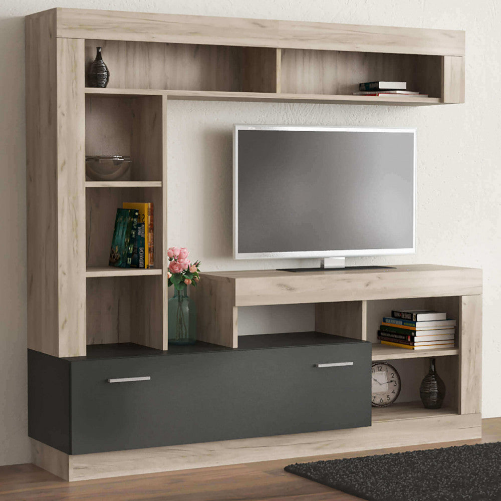 Wohnzimmerwand Leonard 170 x 42 x 170 h cm aus zweischichtiger schwarzer Spanplatte