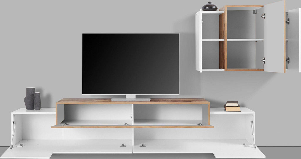 Il soggiorno CORO con porta TV + pensile largo 240 cm è un complemento d’arredo componibile immancabile in qualsiasi abitazione moderna.