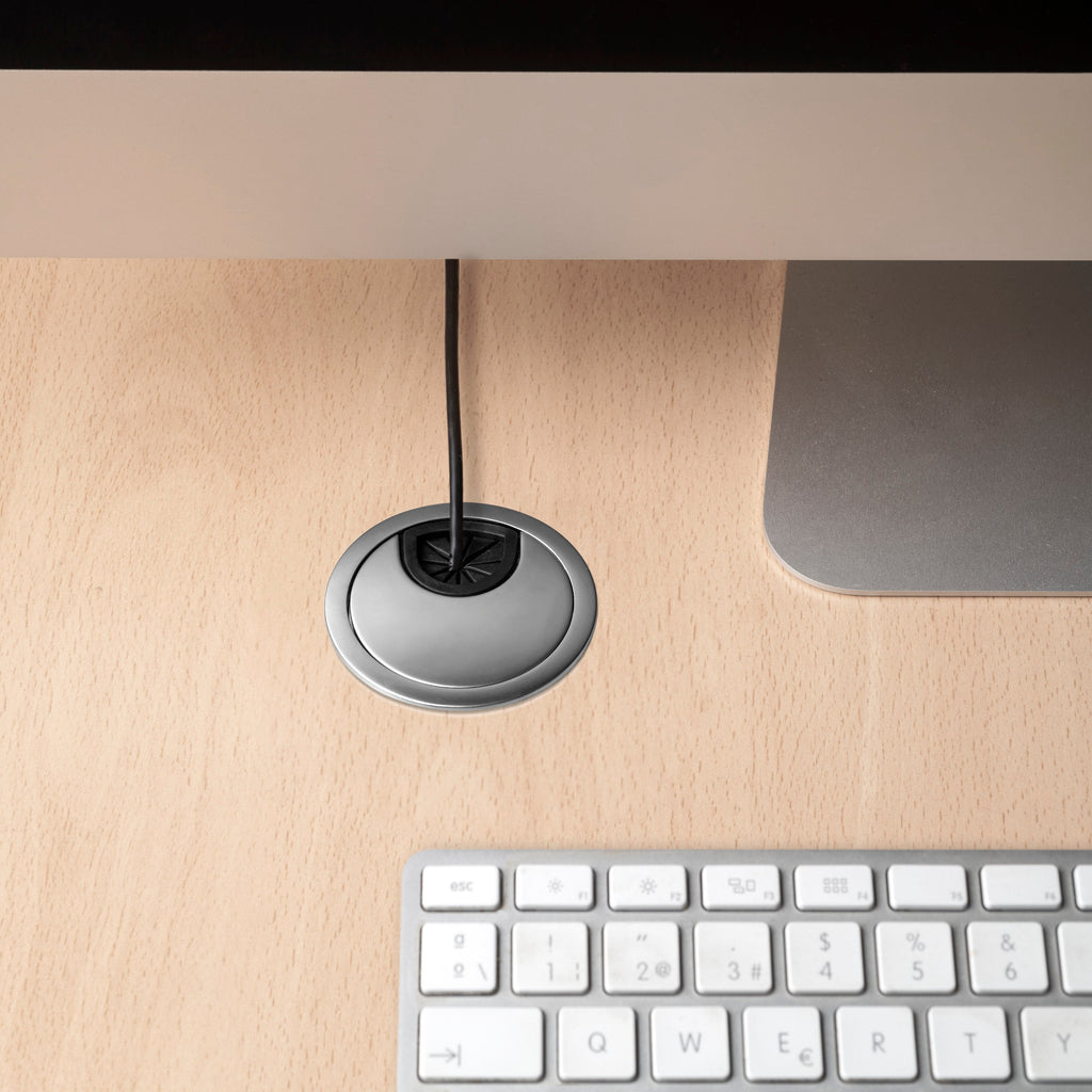 - Runde Kabelverschraubung zum Einbau in die Möbeloberfläche.