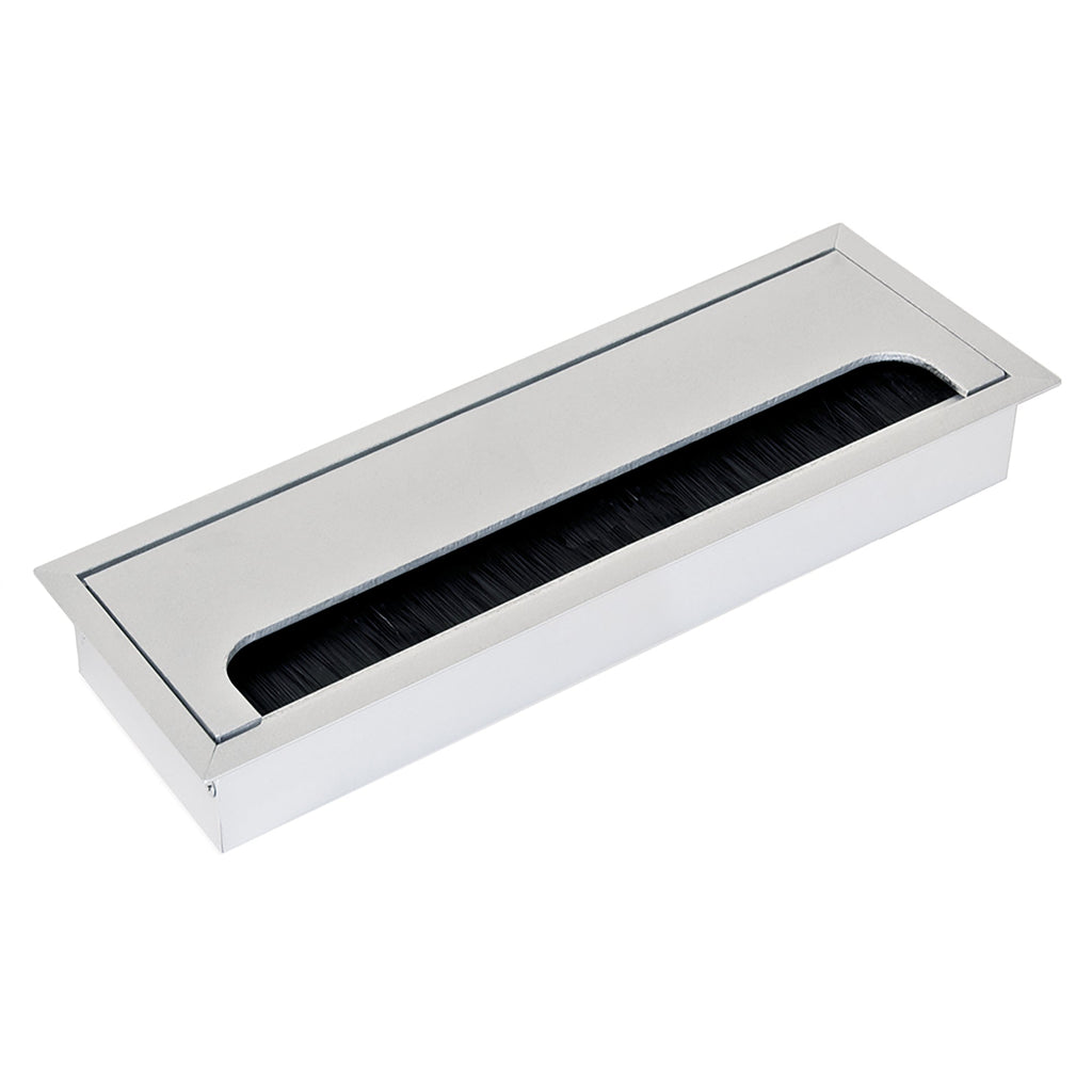 Rechteckige Kabelaufwicklung zur Integration in jeden Schreibtisch oder Tisch, aus matt eloxiertem Aluminium . Seine rechteckige Form ermöglicht es Ihnen, Kabel unterschiedlicher Größe und Dicke zu führen und sie dank des Klappdeckels leicht zu verstecken.
