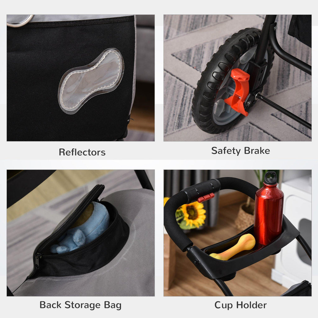 Faltbarer Kinderwagen für Hunde und Katzen 100 x 45 x 92 cm mit abnehmbarer Tragetasche Schwarz und Grau