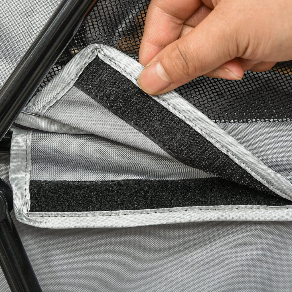 - REIßVERSCHLUSS-DESIGN UND EINFACHER ZUGANG: Ihr Haustier kann leicht durch das 4-stufige Verdeck eintreten und dank der Netzfenster die frische Luft genießen. Das Verdeck des Hundewagens hat einen Clip zum einfachen Öffnen und Schließen.