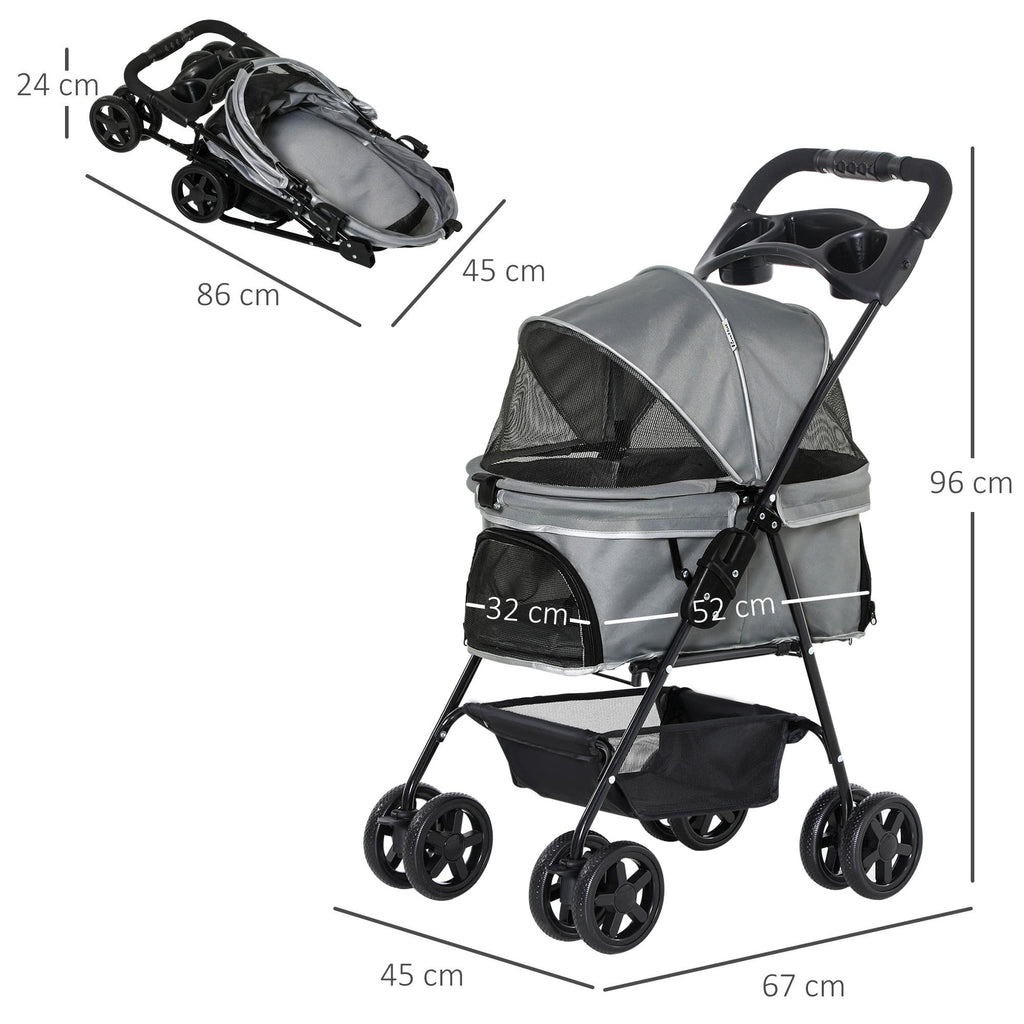 - EINFACH ZU LAGERN UND PRAKTISCH: Der Kinderwagen lässt sich leicht zusammenfalten, um ihn auf kleinem Raum zu verstauen, wenn Sie ihn nicht benötigen, und ihn auf praktische Weise mitzunehmen. Es verfügt über einen Flaschenhalter unter dem Griff und einen unteren Korb zur Aufbewahrung des gesamten Zubehörs für Ihren Hund oder Ihre Katze.