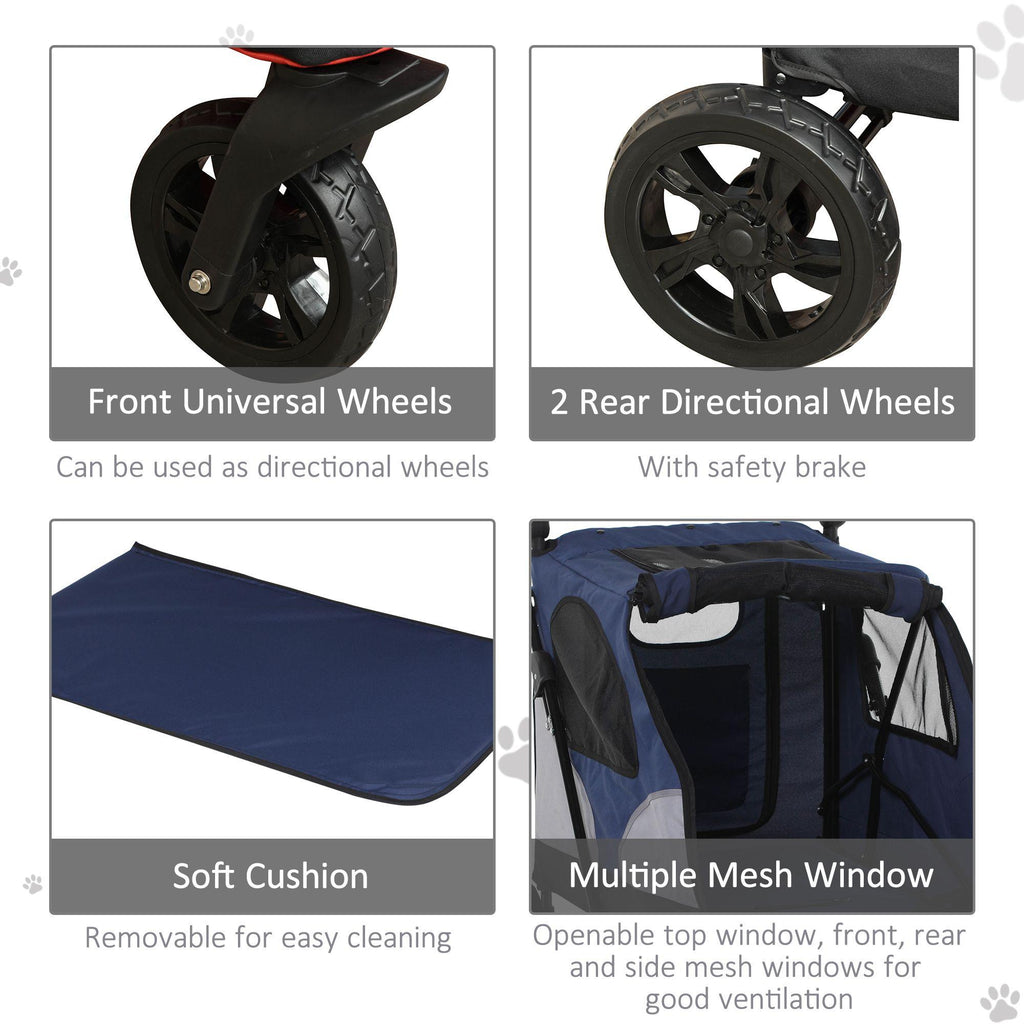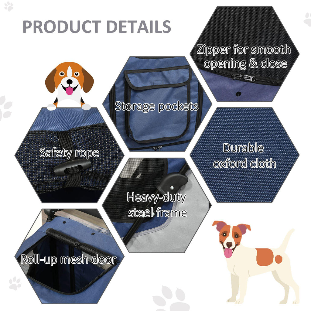 Kinderwagen für kleine mittelgroße Hunde 104,5 x 68,5 x 110 cm in Stahl und grauem und blauem Oxford-Stoff