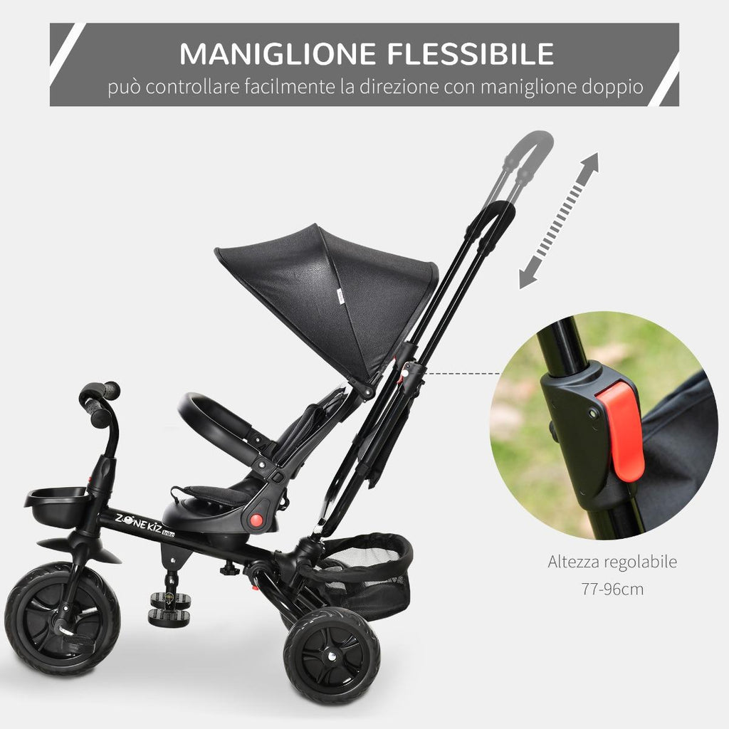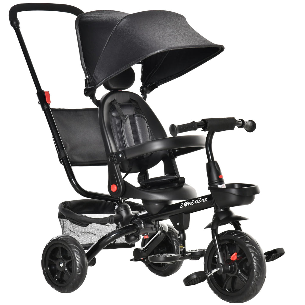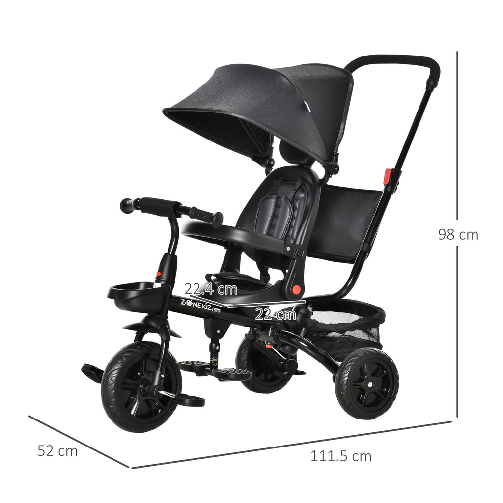 Dreirad-Kinderwagen mit 360° drehbarem Sitz, abnehmbarem Verdeck und Bügel Schwarz