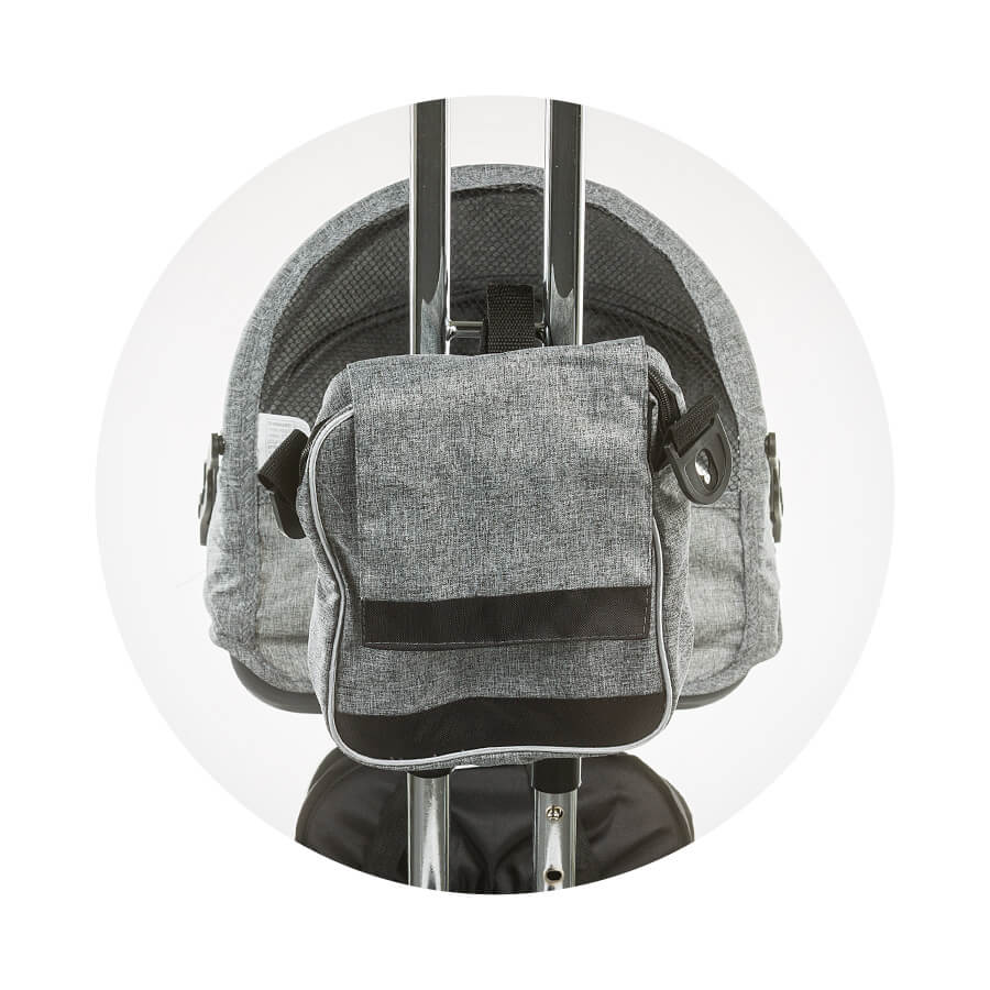 Zubehörtasche am Griff mit Schultergurt zum Tragen wie eine normale Tasche.