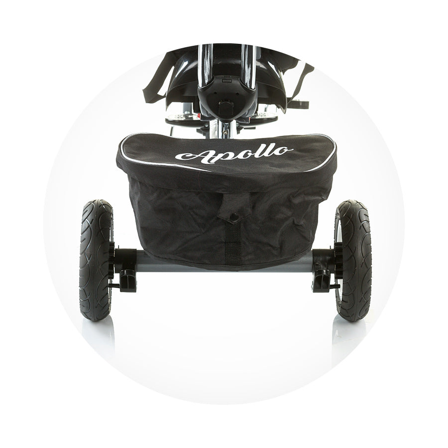 Durch die Beweglichkeit der Vorderräder kann der Kinderwagen vorwärts und rückwärts gedreht werden.
