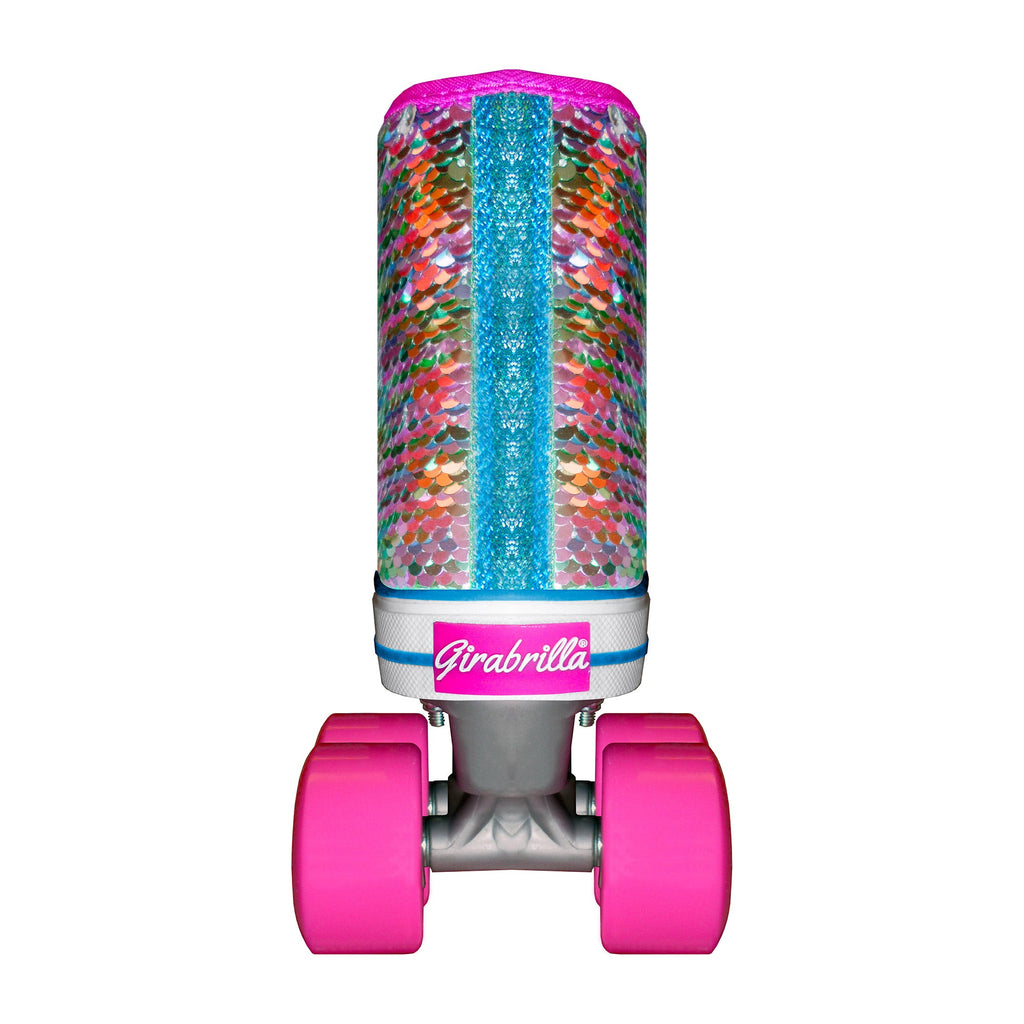 Pattini con gruppo ruote classiche 2 ruote anteriori e 2 ruote posteriori (QUAD). Realizzati con una calzata stilosa che ricorda le sneaker, presentano paillettes iridescenti girevoli per un tocco di glamour. Dotati di freno a tampone per una facile frenata. Le ruote da 50x30mm e i cuscinetti di precisione garantiscono una scorrevolezza fluida. Con una portata massima di 60 kg, sono perfetti per chi cerca un modo divertente e alla moda per muoversi.