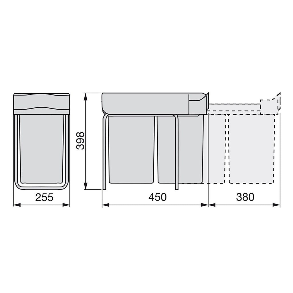 Emuca Grauer Abfallbehälter 2 Behälter für Kücheneinheiten 14L Manuelle Entnahme