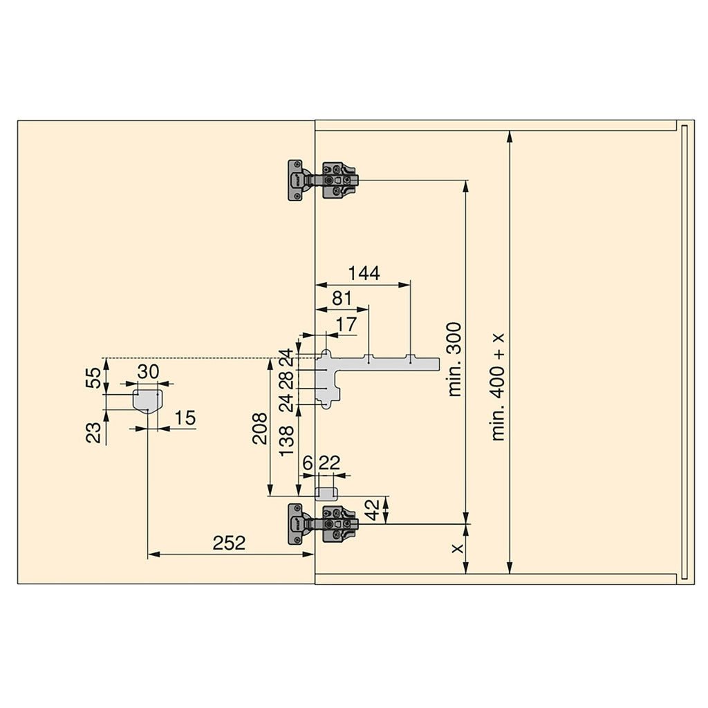 - Gültig für Schränke mit einer Mindestinnenbreite von 405 mm mit linker und rechter Öffnung.