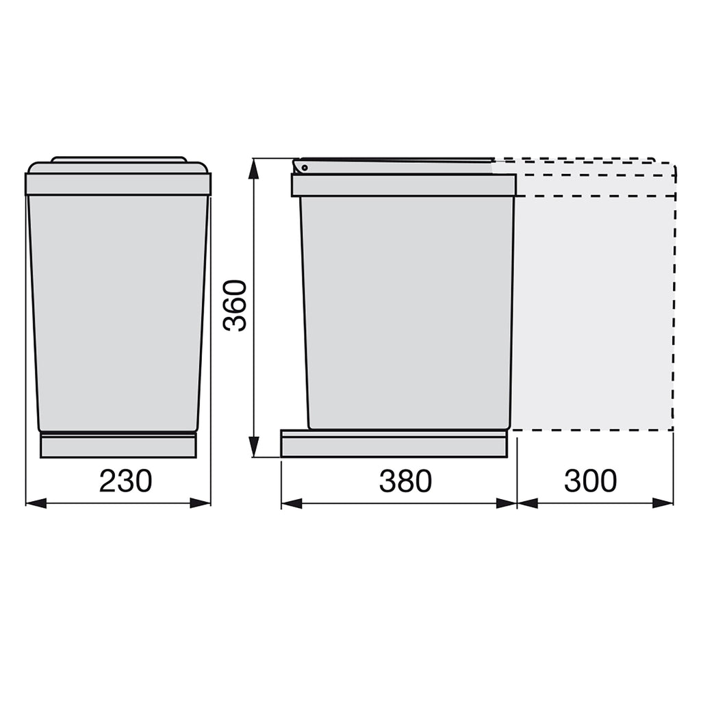Emuca grauer separater Abfallbehälter für Küchenschränke 16 l manuelle Entnahme