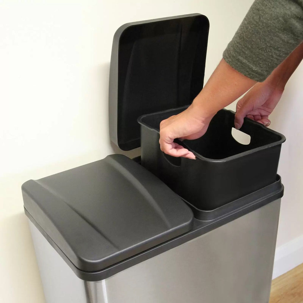 Ricicla la spazzatura con facilità con questa pattumiera a due compartimenti di grazie ai suoi 2 comparti da 30L ciascuno, c’è spazio in abbondanza sia per immondizia mista che per riciclaggio