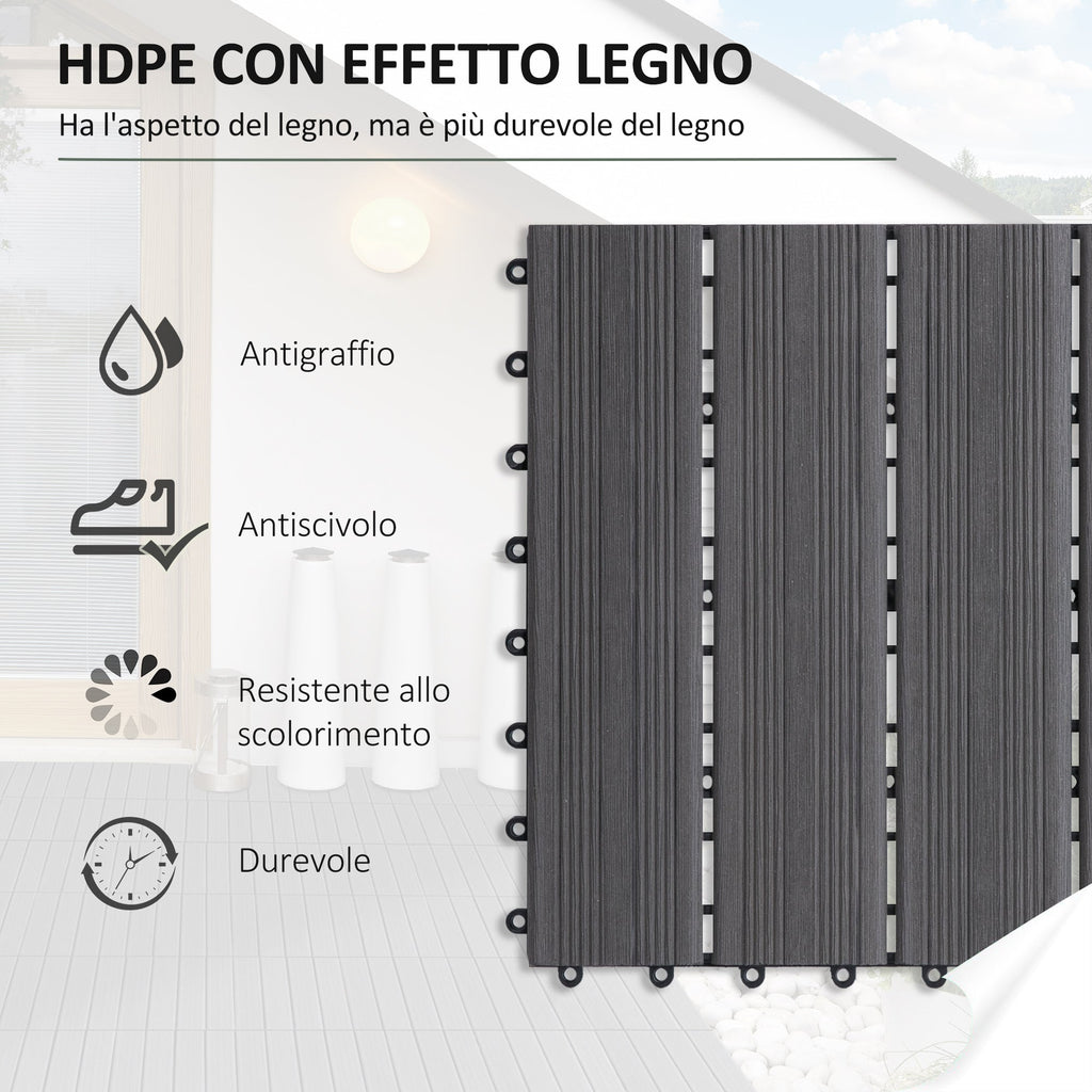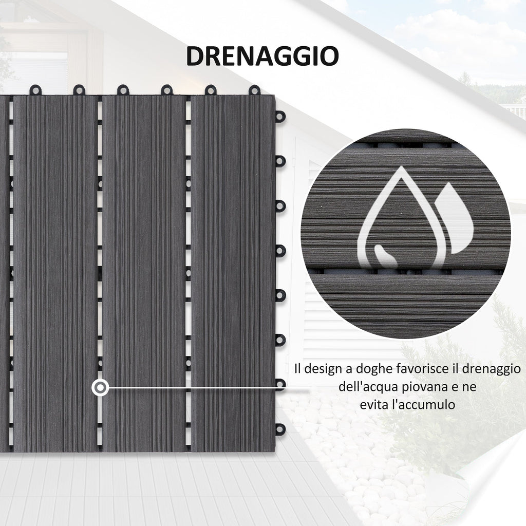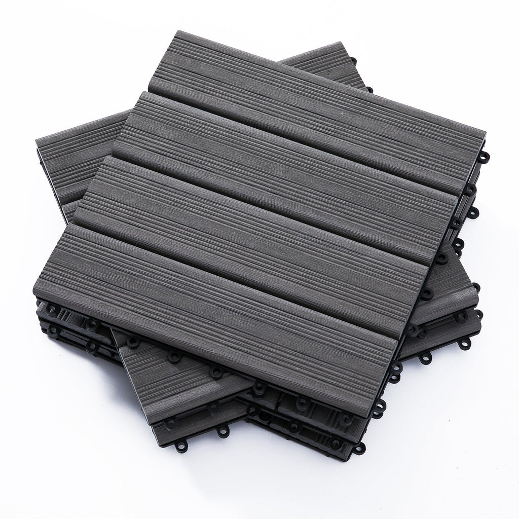 Ineinandergreifender Bodenbelag für den Außenbereich 11 Fliesen 30 x 30 x 2,2 cm Grau