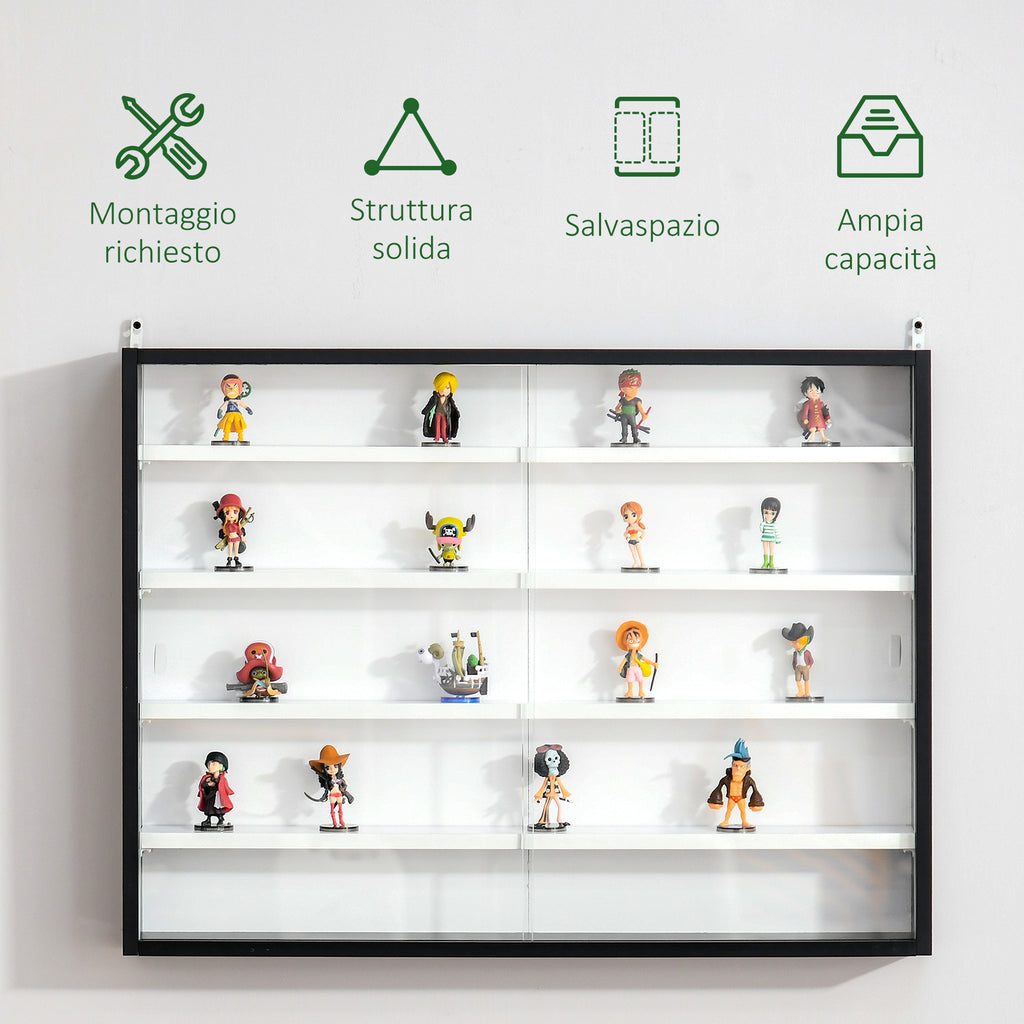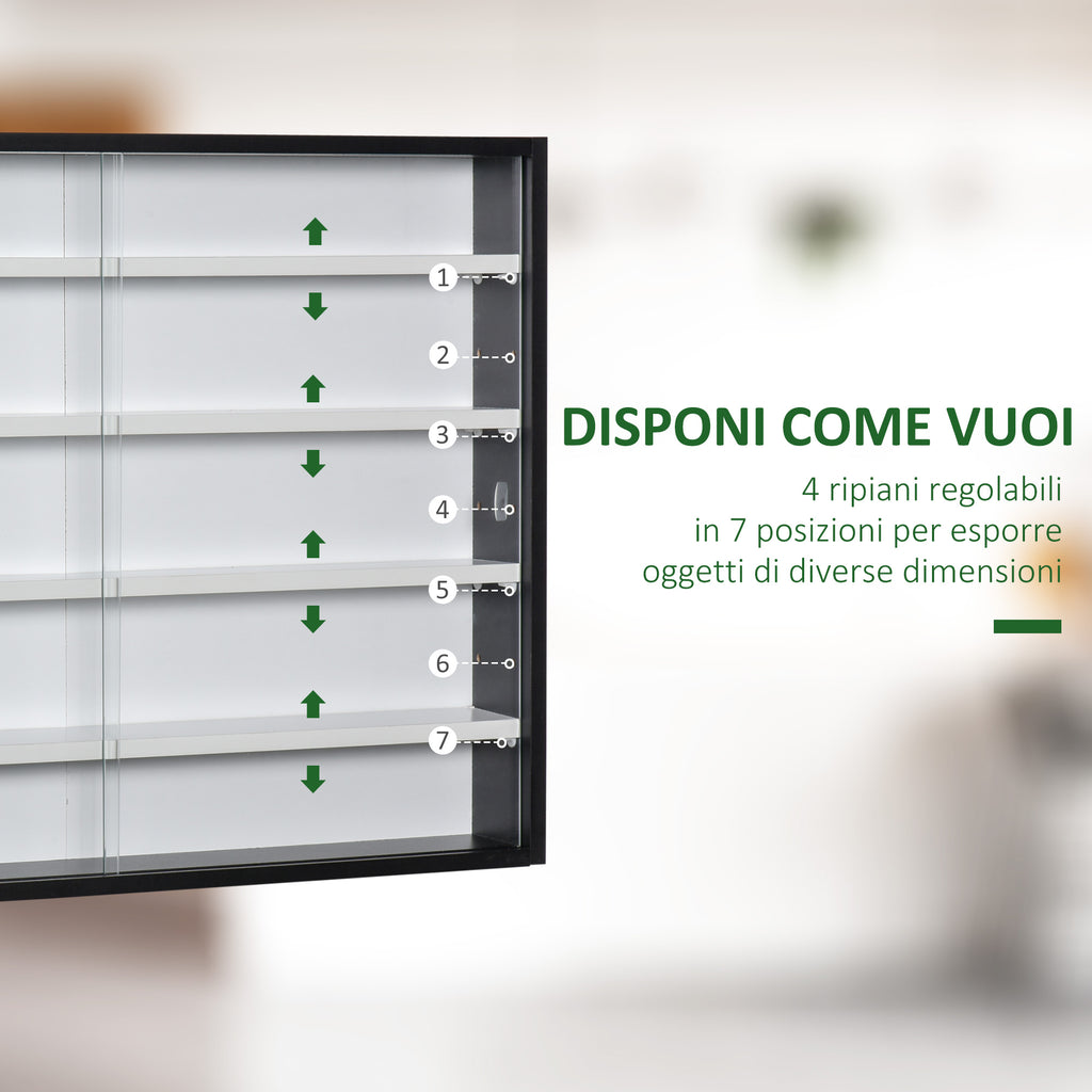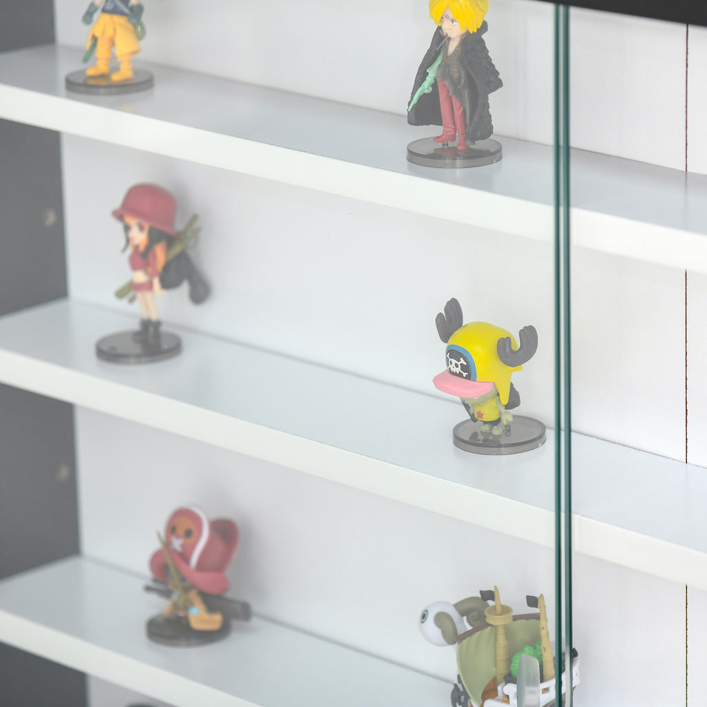 Müssen Sie Ihren Sammlerstücken ein Zuhause geben? Mit dem Ablagebrett haben Sie genau den richtigen Platz. Das 5-stufige Design ermöglicht es Ihnen, alles ordentlich zu platzieren, und Sie können die Regale anpassen, um Gegenstände unterschiedlicher Größe aufzubewahren. Die Spanplattenstruktur macht die Wandvitrine widerstandsfähig und die Glasschiebetüren ermöglichen Ihnen einen einfachen Zugang zum Innenraum, während Ihre Gegenstände geschützt bleiben.